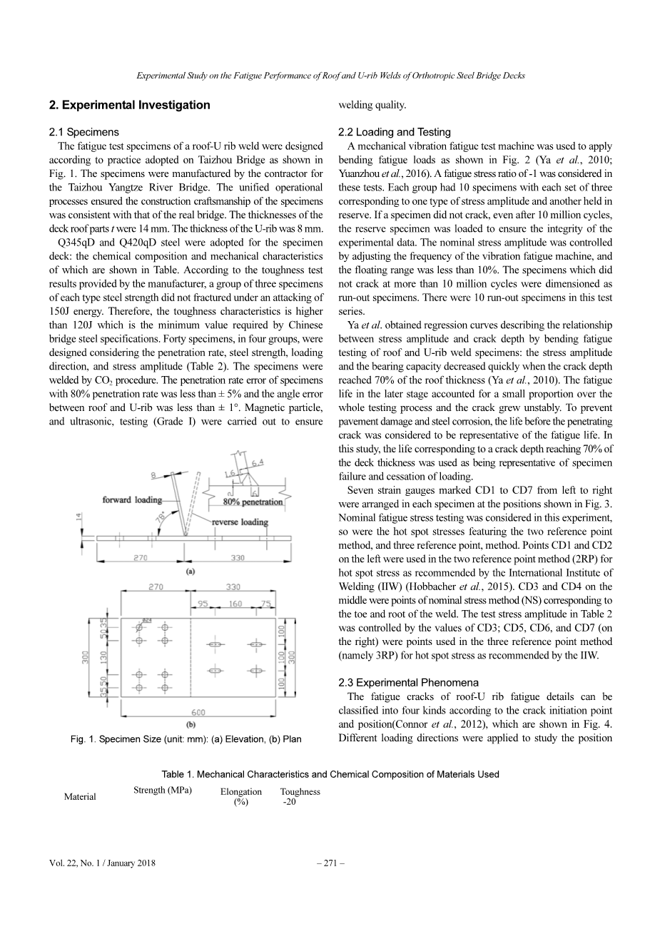 目前,根据不同规格的名义应力方法(JRA,2002; AASHTO,2012; JTG D64-2015,2015),屋顶U肋的疲劳强度分类及其相应的疲劳强度曲线并不相同。此外,疲劳细节与屋顶-U肋焊接完全一致缺乏对热点应力方法的应用(Hobbacher,2015)的结构细节.The尺寸(屋顶和U肋的厚度)(Maljaars等人,2012 ),焊接工艺(渗透速率和甲板变形修正)(SIM等人,2012)车辆装载量,振幅(Ji等人,2012)和环境(Guo等人,2008年b)在设计过程中影响疲劳机制,钢桥面的制造,施工和服务加工。同时,高强度钢还应用于部分桥梁或部分桥梁。因此,本研究通过实验研究了钢材强度,穿透率,加载方向和应力幅值对屋面U肋焊缝疲劳性能的影响。