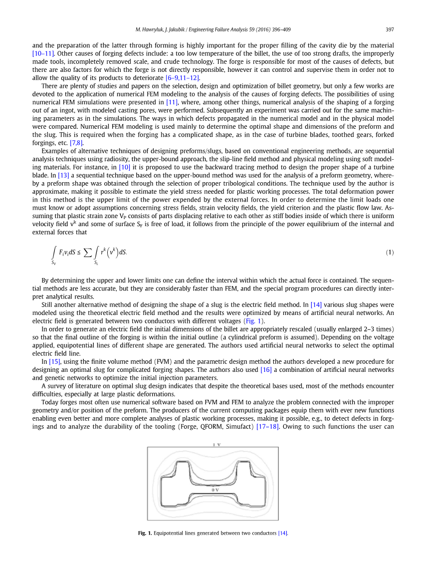 为了产生一个电场,初始坯料尺寸适当调整(通常2–放大3倍)。因此,锻造的最后的轮廓是取决于初始轮廓(一个圆柱形的预成形假定)。根据电压应用,产生等势线的不同形状。作者用人工神经网络来选择最佳电场线。