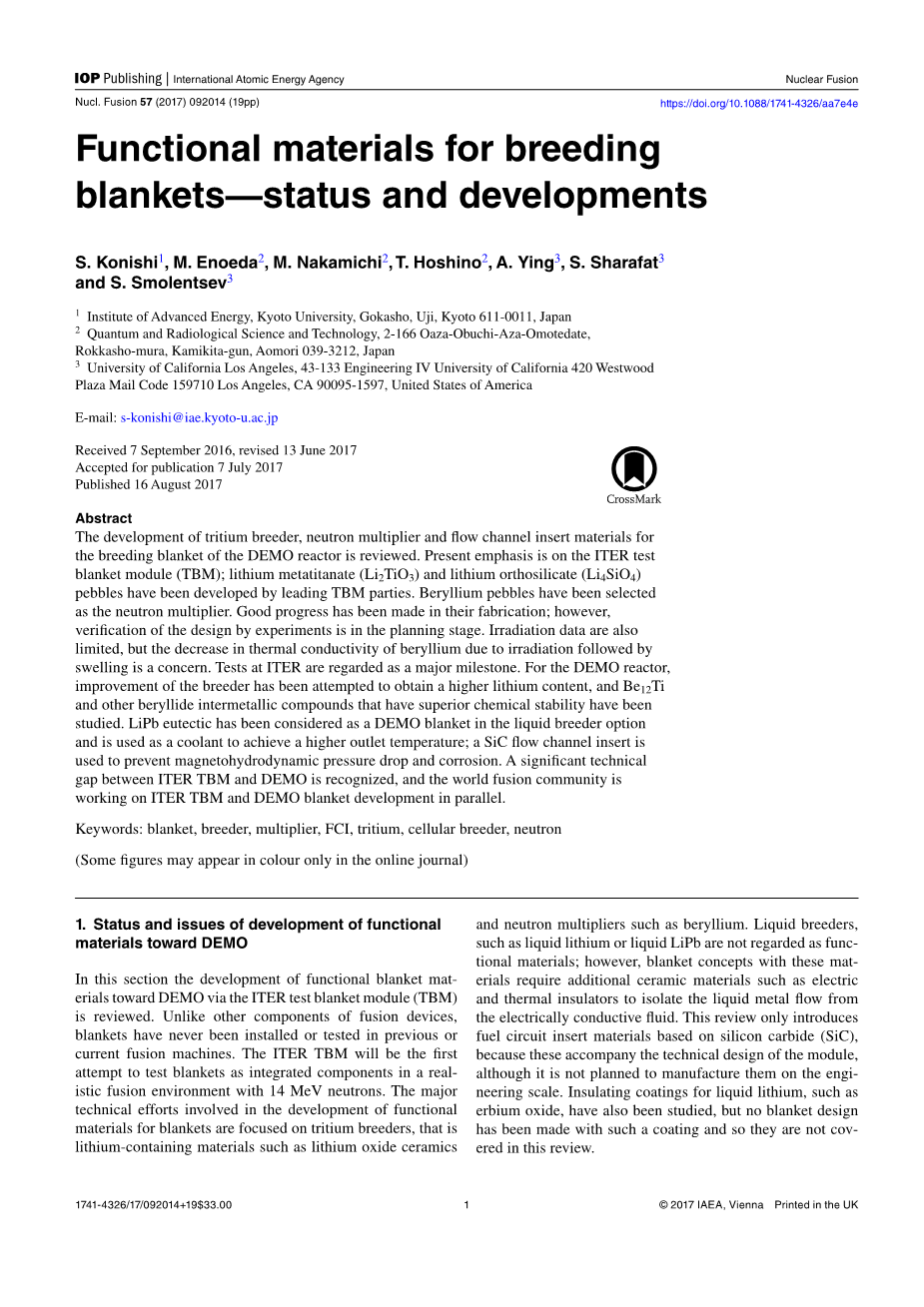 S. Konishi1, M. Enoeda2, M. Nakamichi2, T. Hoshino2, A. Ying3, S. Sharafat3 and S. Smolentsev3