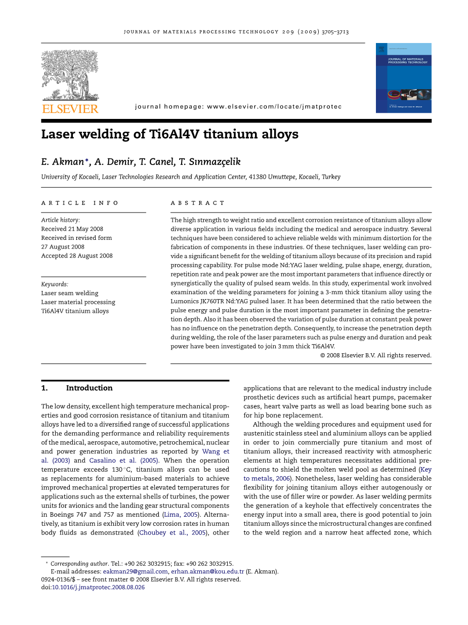 E. Akman,A。Demir,T。Canel,T.Snnzzccedil;elik
