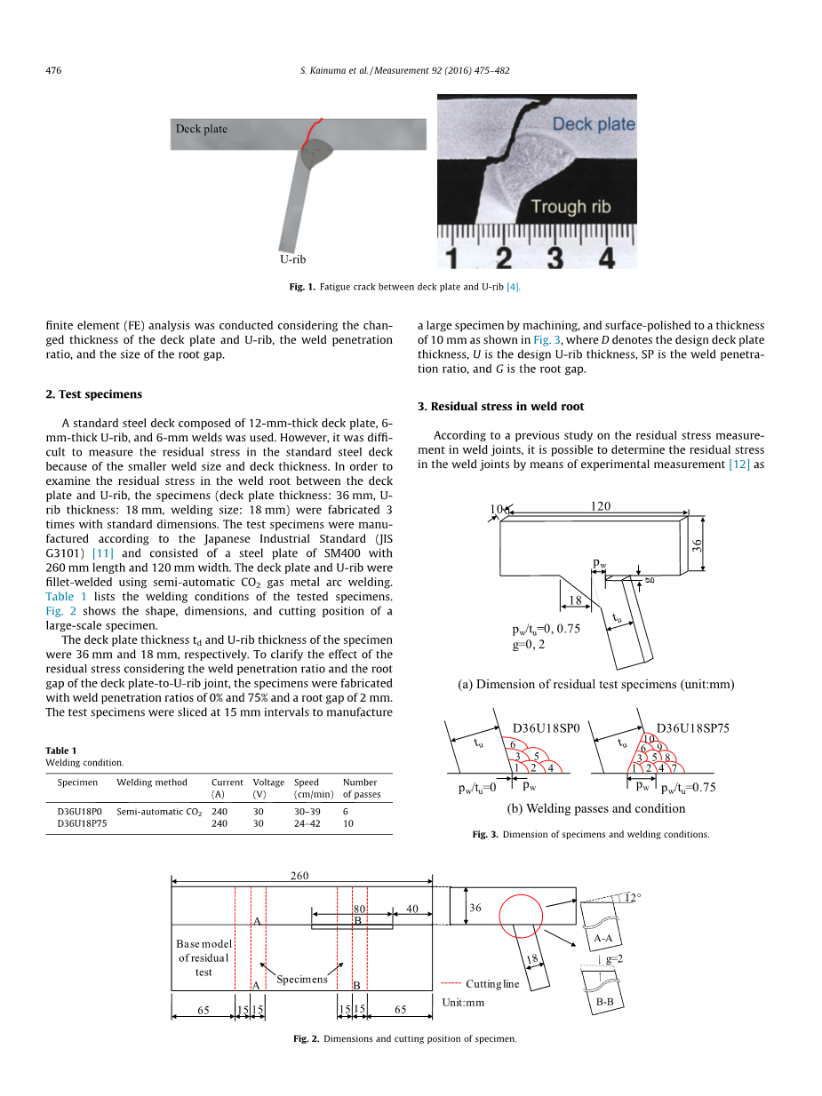近来,在正交异性钢板和U形肋之间的焊缝根部出现了疲劳裂纹。一些裂纹从焊缝根部开始,然后在甲板上扩展。根部的焊接残余应力对裂纹的萌生和扩展有很大的影响。然而,压力在以前的研究中还没有得到有效的澄清。本文采用切削法和磁致伸缩法测量了模型试件在焊接熔深和根隙情况下的残余应力。此外,对实际焊接接头的参数化模型进行了热弹塑性有限元分析。
