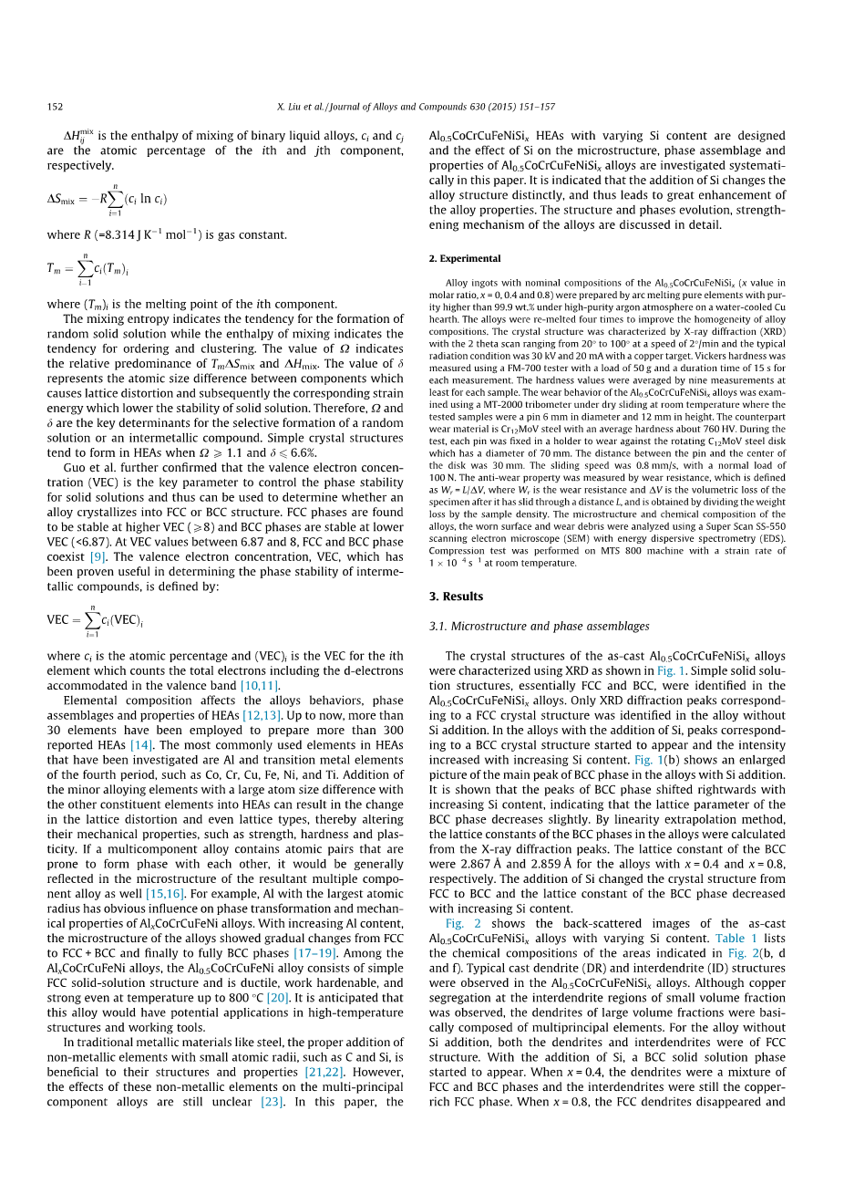Al0.5CoCrCuFeNiSix的微结构,相组合和性质(x = 0,0.4,0.8)