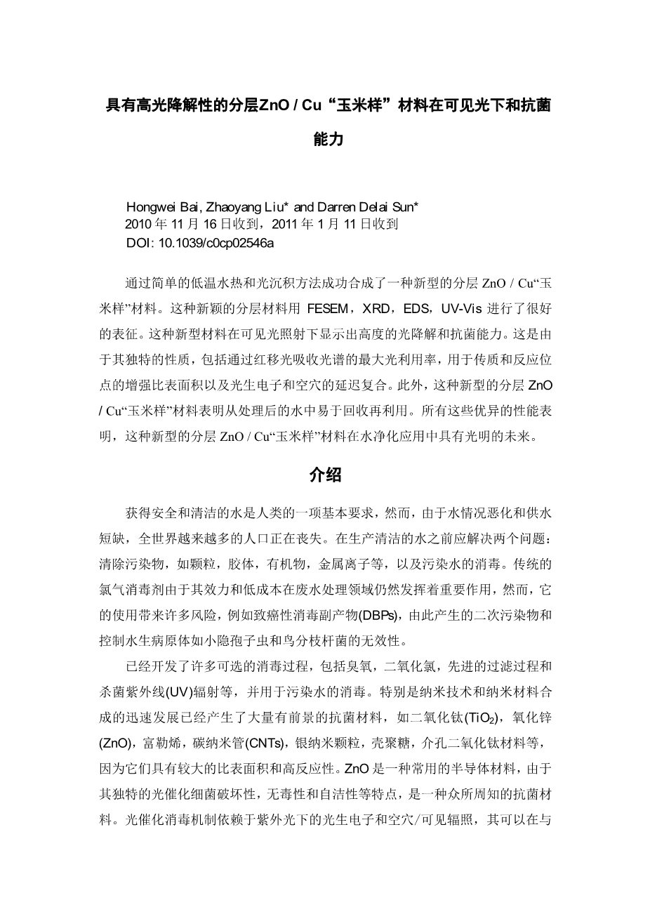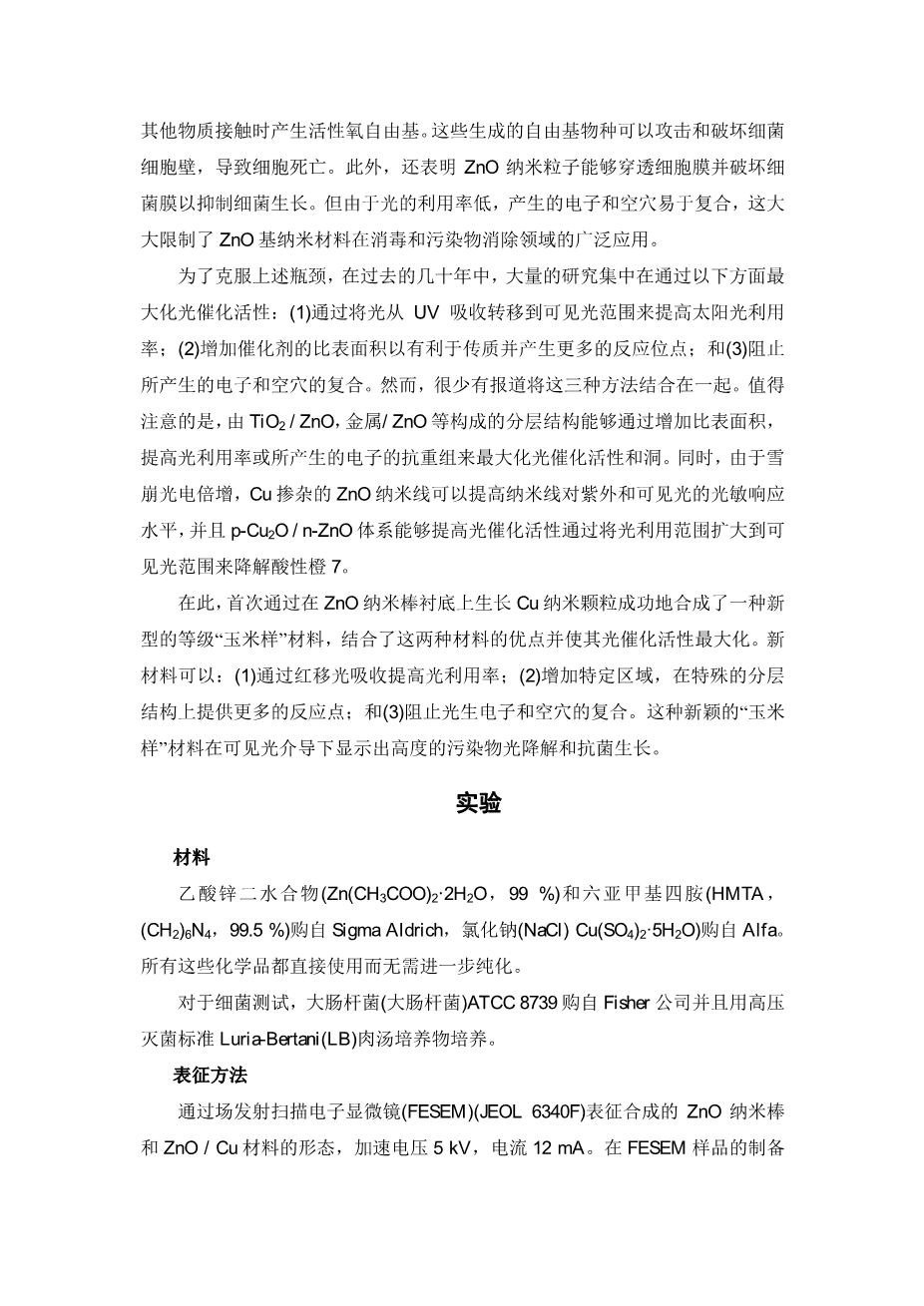 - 由MOF-74 (Zn)制备具有超快吸附污染物能力和超电 容特性的多功能多孔Zn0-C复合材料外文翻译资料