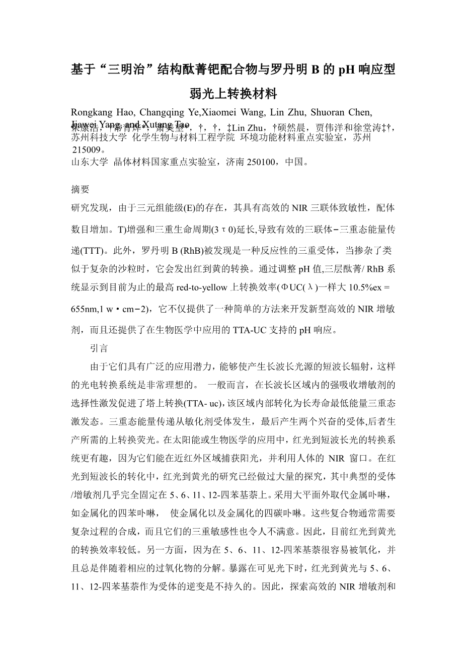 - 氢键控制的柔性共价有机骨架的结晶度和吸附 性能的机理研究外文翻译资料