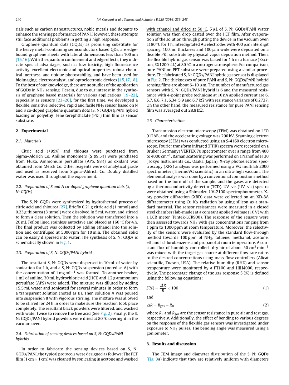 室温下基于硫、氮共掺杂石墨烯量子点/聚苯胺复合合物的高灵敏度柔性氨气传感器外文翻译资料