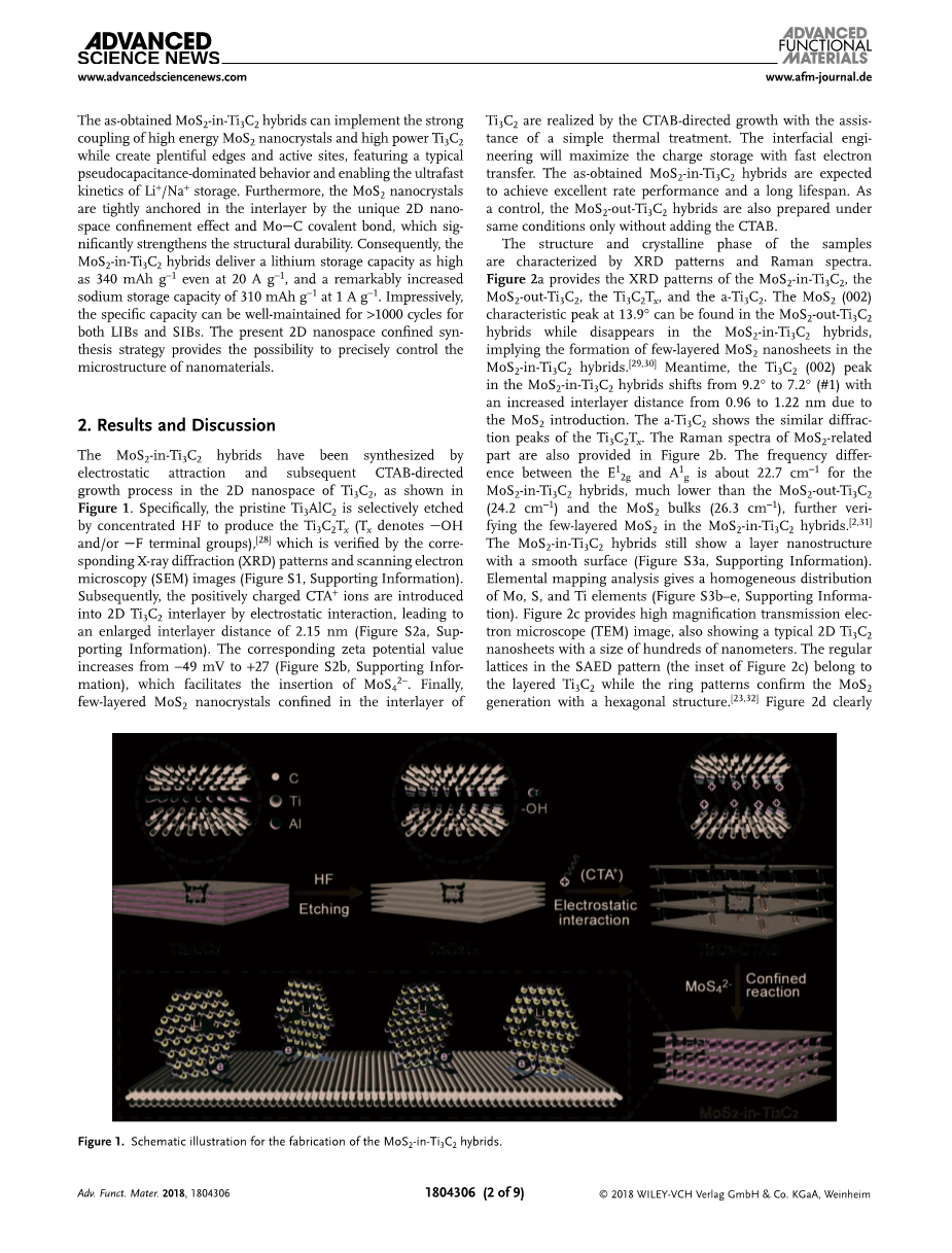 用于超快且稳定的锂/钠离子电池的伪电容主导的MoS2-in-Ti3C2上层结构的二维纳米空间受限合成外文翻译资料