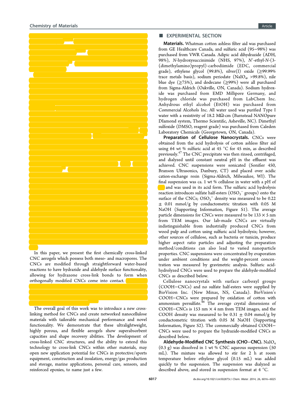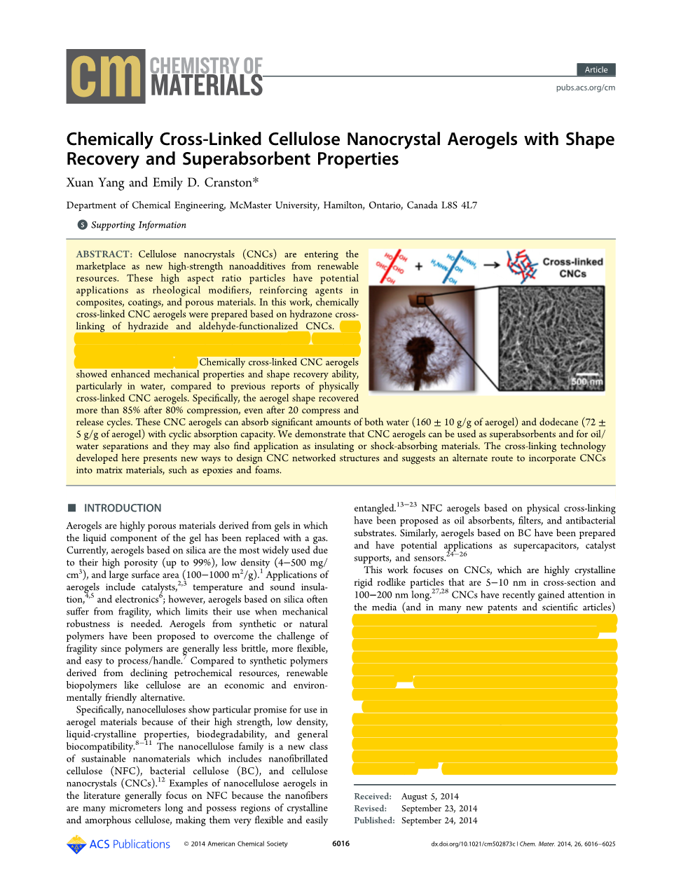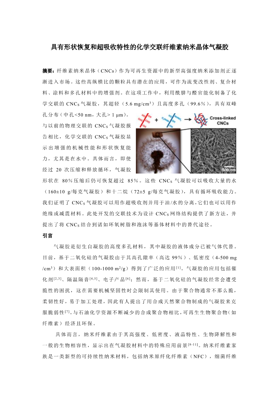 - 具有形状恢复和超吸收特性的化学交联纤维素纳米晶体气凝胶外文翻译资料