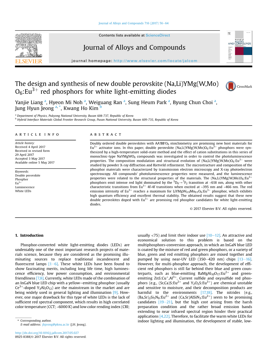 关键词:双钙钛矿 荧光粉 Eu3 发光 白色二极管