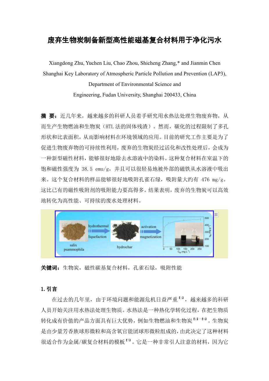 - 由MOF-74 (Zn)制备具有超快吸附污染物能力和超电 容特性的多功能多孔Zn0-C复合材料外文翻译资料