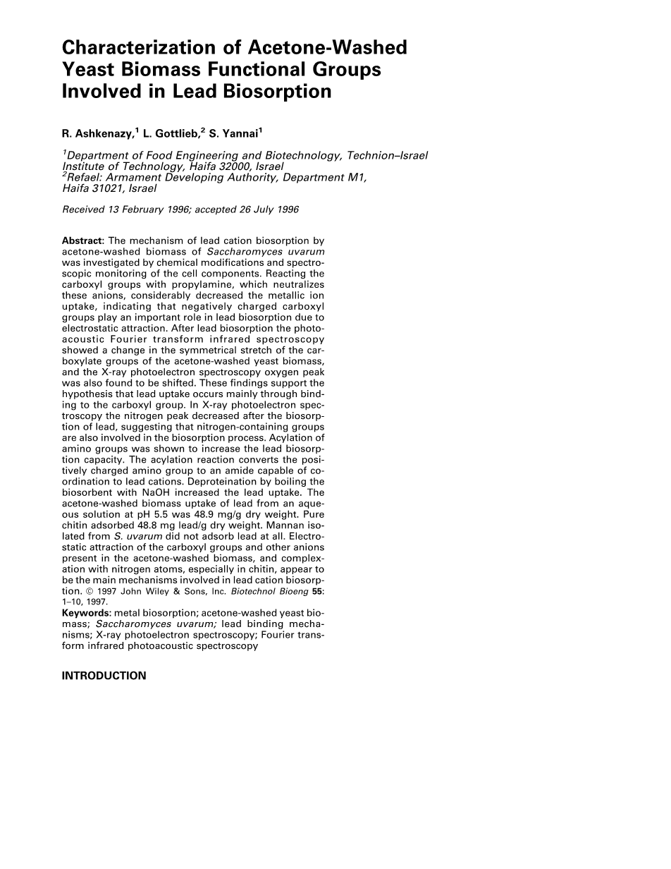 上述较早的研究结果表明,由啤酒工业大量生产并且具有良好经济价值的酵母生物质对铅和汞具有很好的吸附能力。因此,有人认为研究这种铅离子吸附机制有广泛的应用前景,铅是许多国家的主要水污染物。这种机制的研究可能有助于开发这种生物质,使其成为更好的金属离子吸附剂。可能存在多重结合机制,因为几种经丙酮洗涤的生物质组分可能负责络合和离子交换作用。为了探索其生物吸附机制,有必要确定参与生物吸附过程的官能团。为此,在本研究中使用诸如X射线光电子能谱(XPS)和傅里叶变换红外光谱(FTIR-PAS)等化学修饰的光谱方法。
