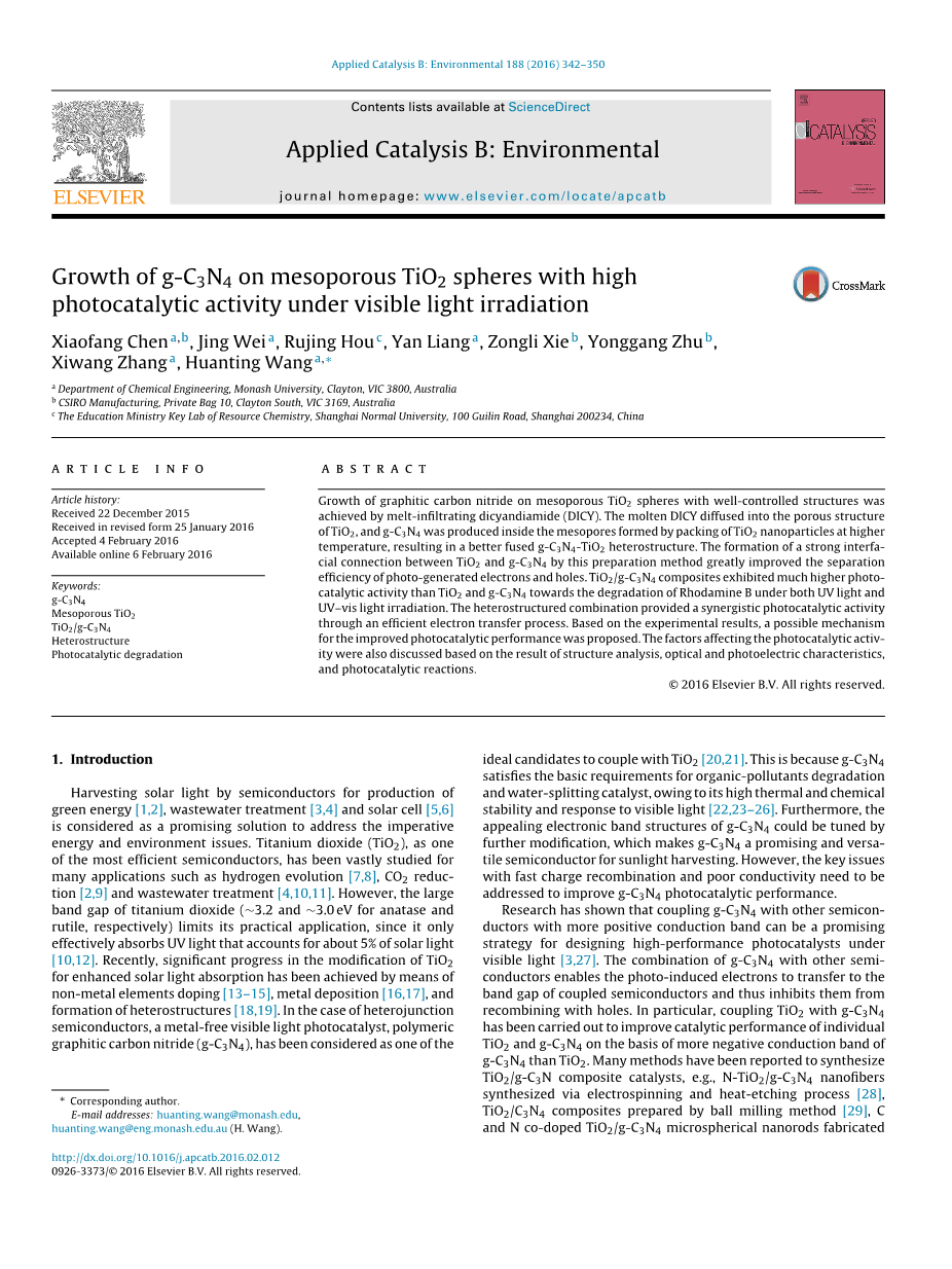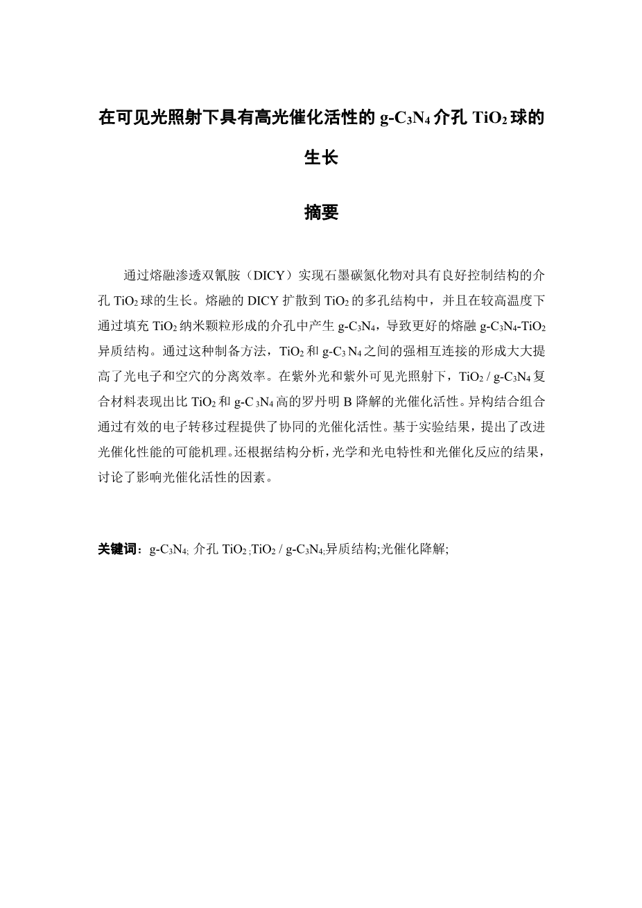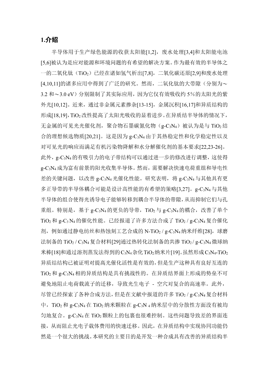 - 一锅法合成非贵金属WS2/g-C3N4增强型光催化剂制氢外文翻译资料