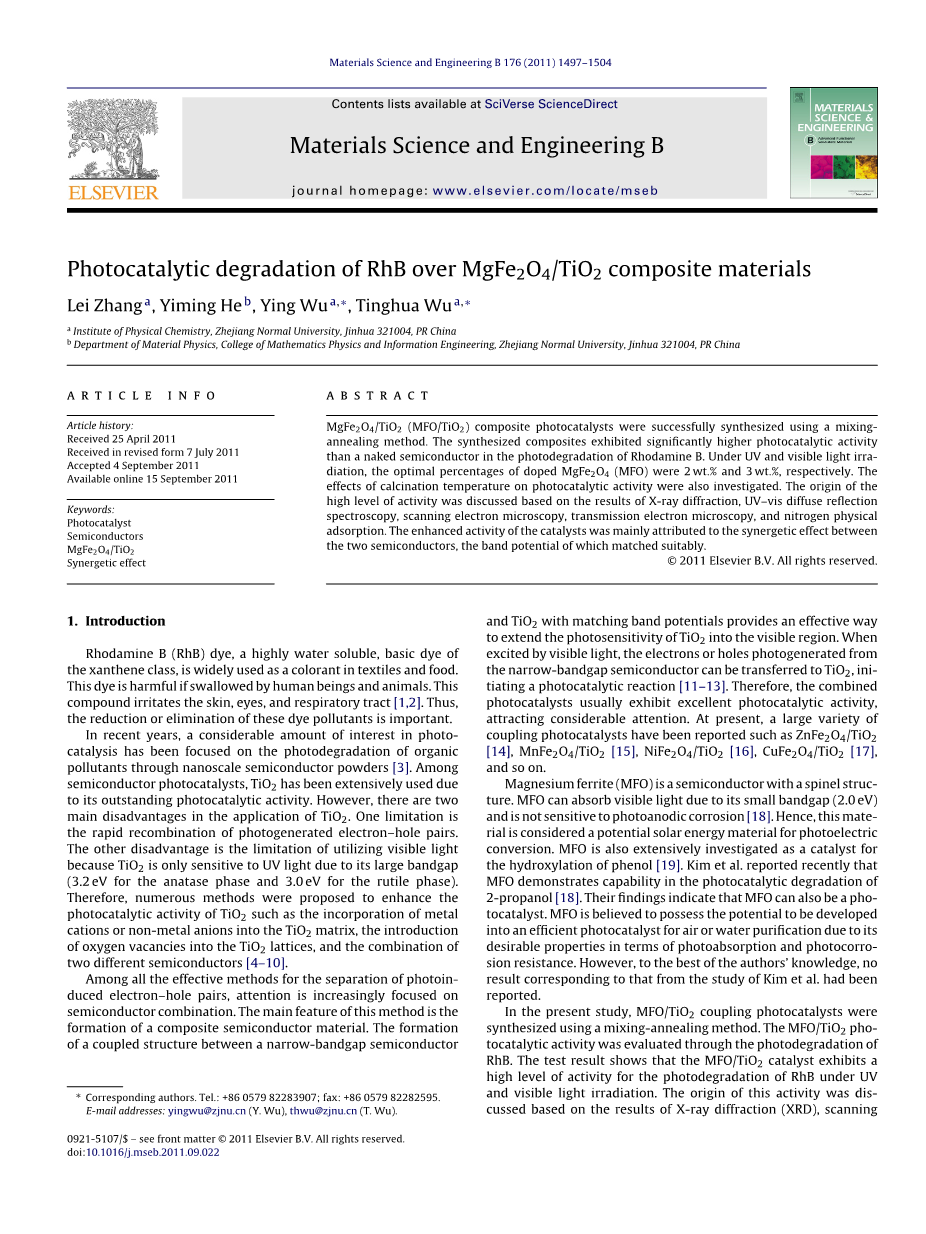 - 一锅法合成非贵金属WS2/g-C3N4增强型光催化剂制氢外文翻译资料