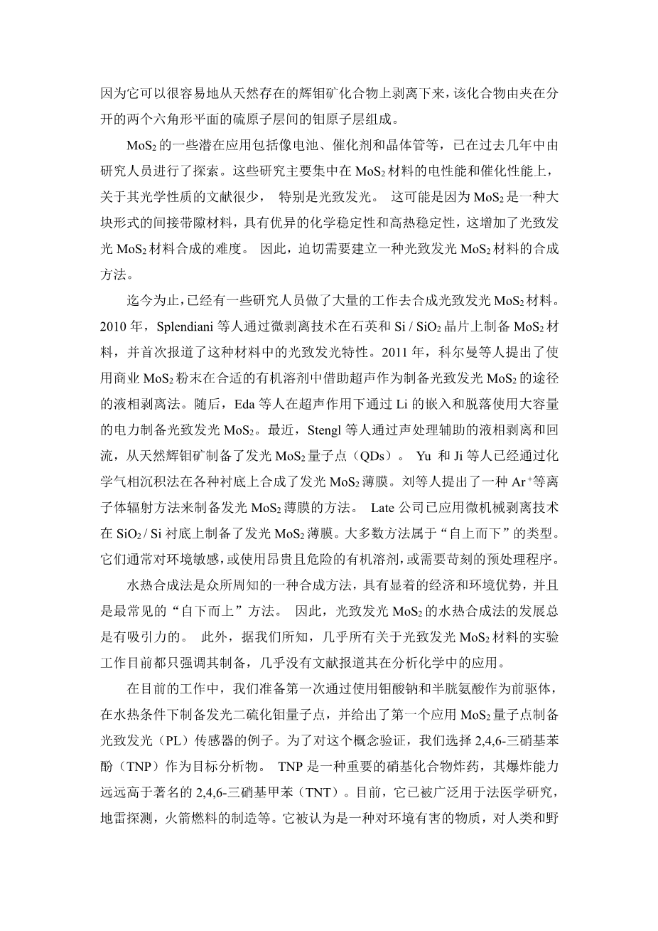 - 一锅法合成非贵金属WS2/g-C3N4增强型光催化剂制氢外文翻译资料