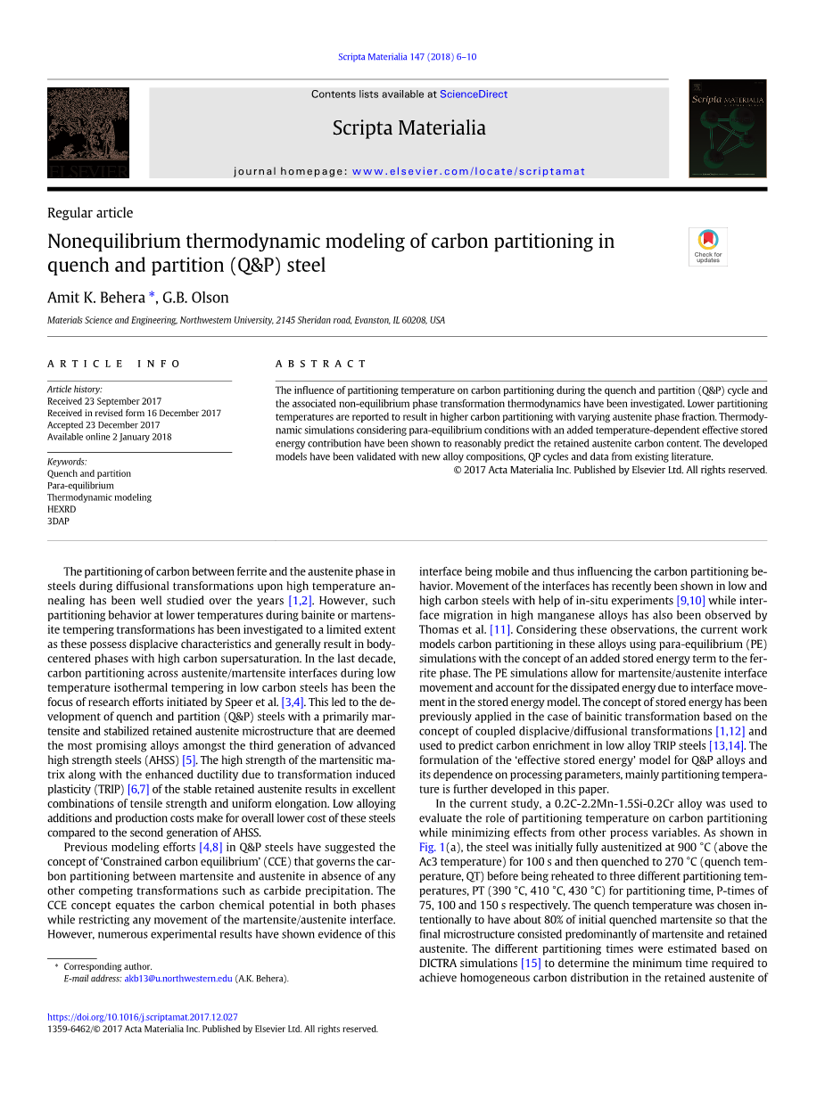 AUS-8马氏体不锈钢淬火-配分处理对组织转变的影响外文翻译资料