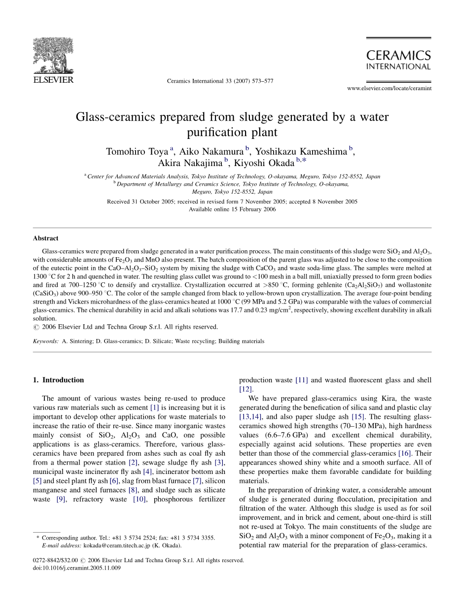Tomohiro Toyaa, Aiko Nakamurab, Yoshikazu Kameshimab,Akira Nakajimab, Kiyoshi Okadab,*