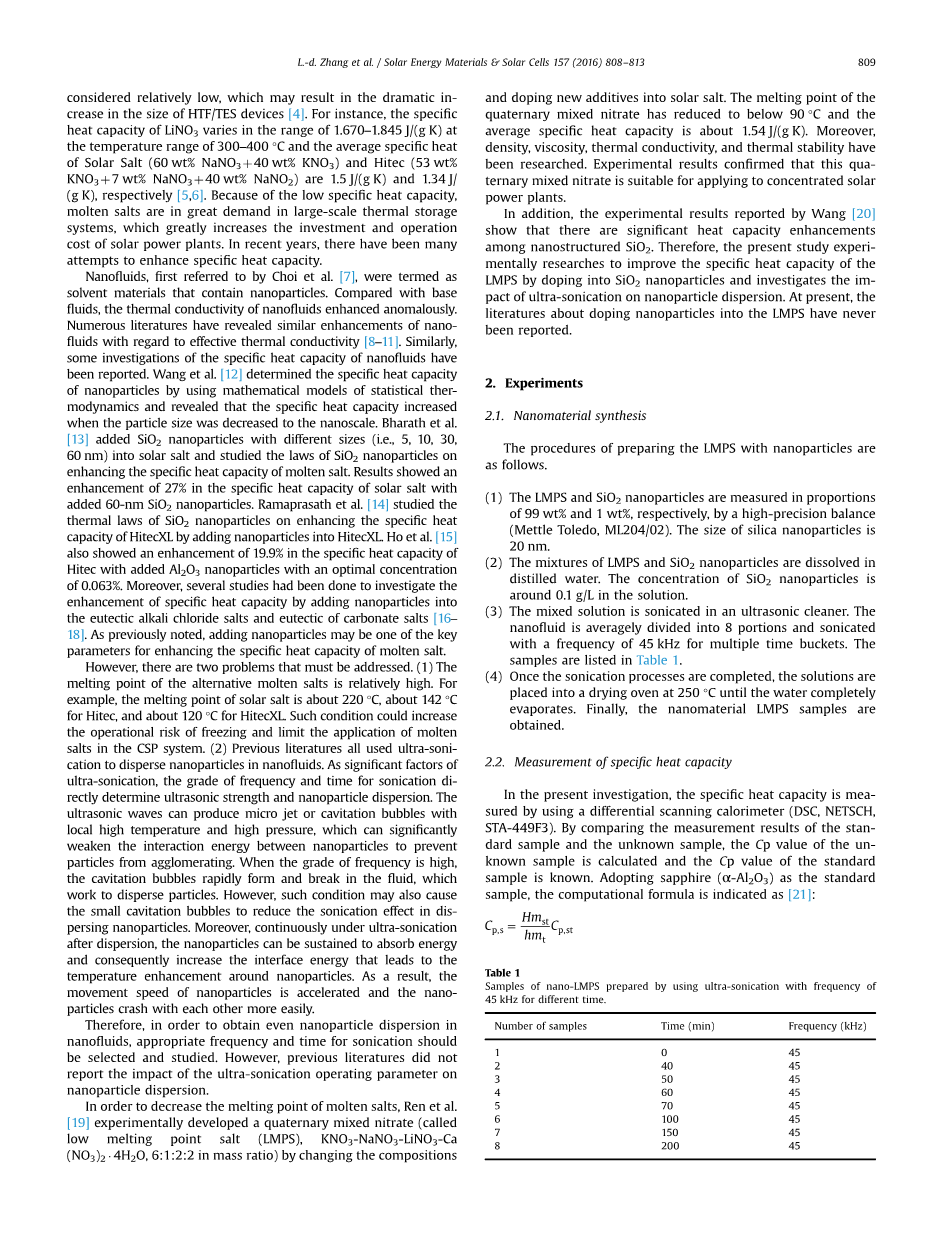 关键词:熔融盐、纳米粒子、比热容、超声波分散、频率