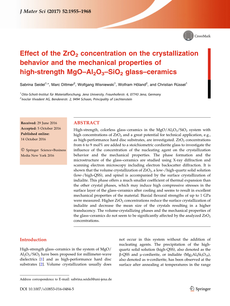 Sabrina Seidel1,*, Marc Dittmer2, Wolfgang Wisniewski1, Wolfram Houml;land2, and Christian Ruuml;ssel1