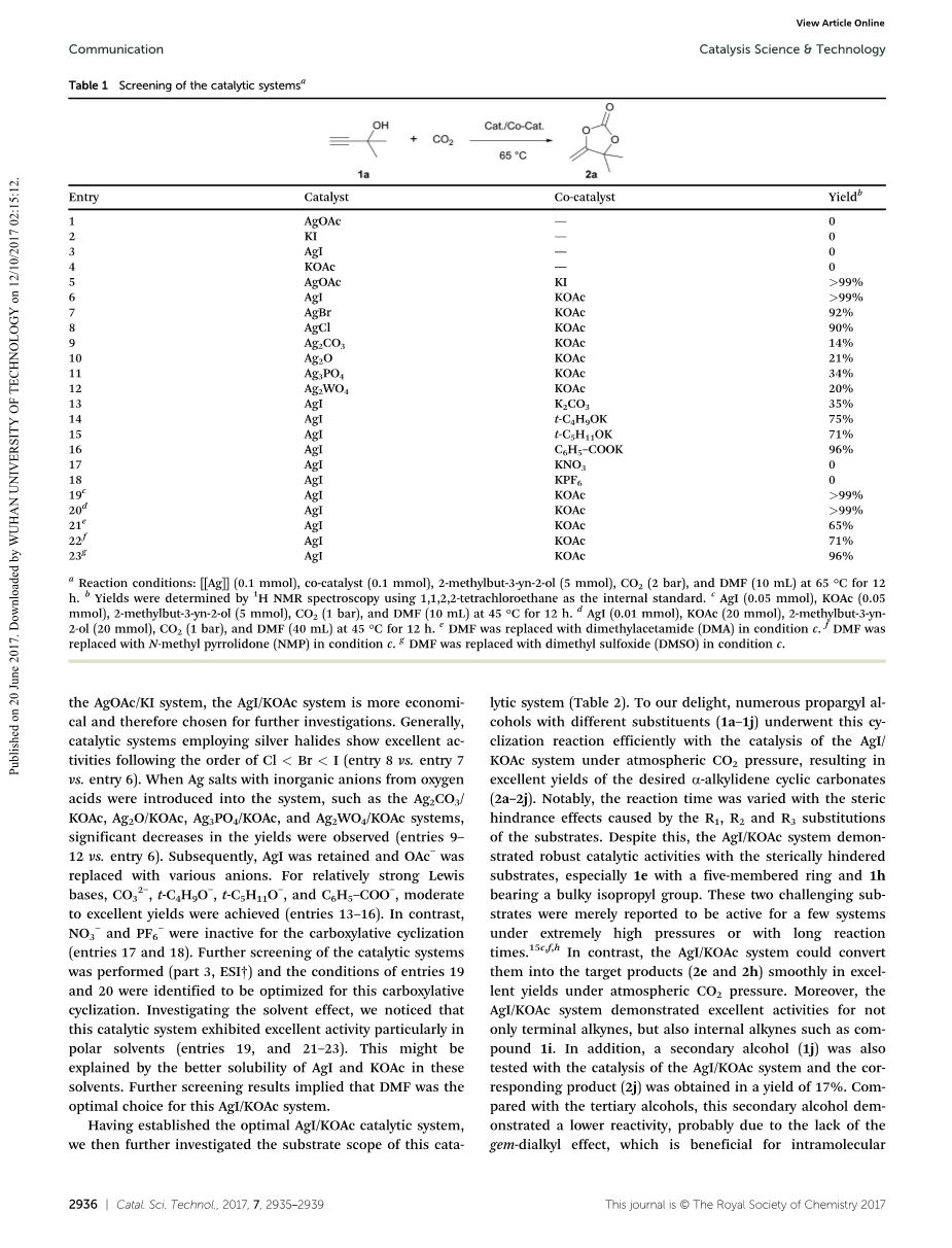 常压下羧化组装炔丙醇和二氧化碳的一种简单而稳固的AgI/KOAc催化体系