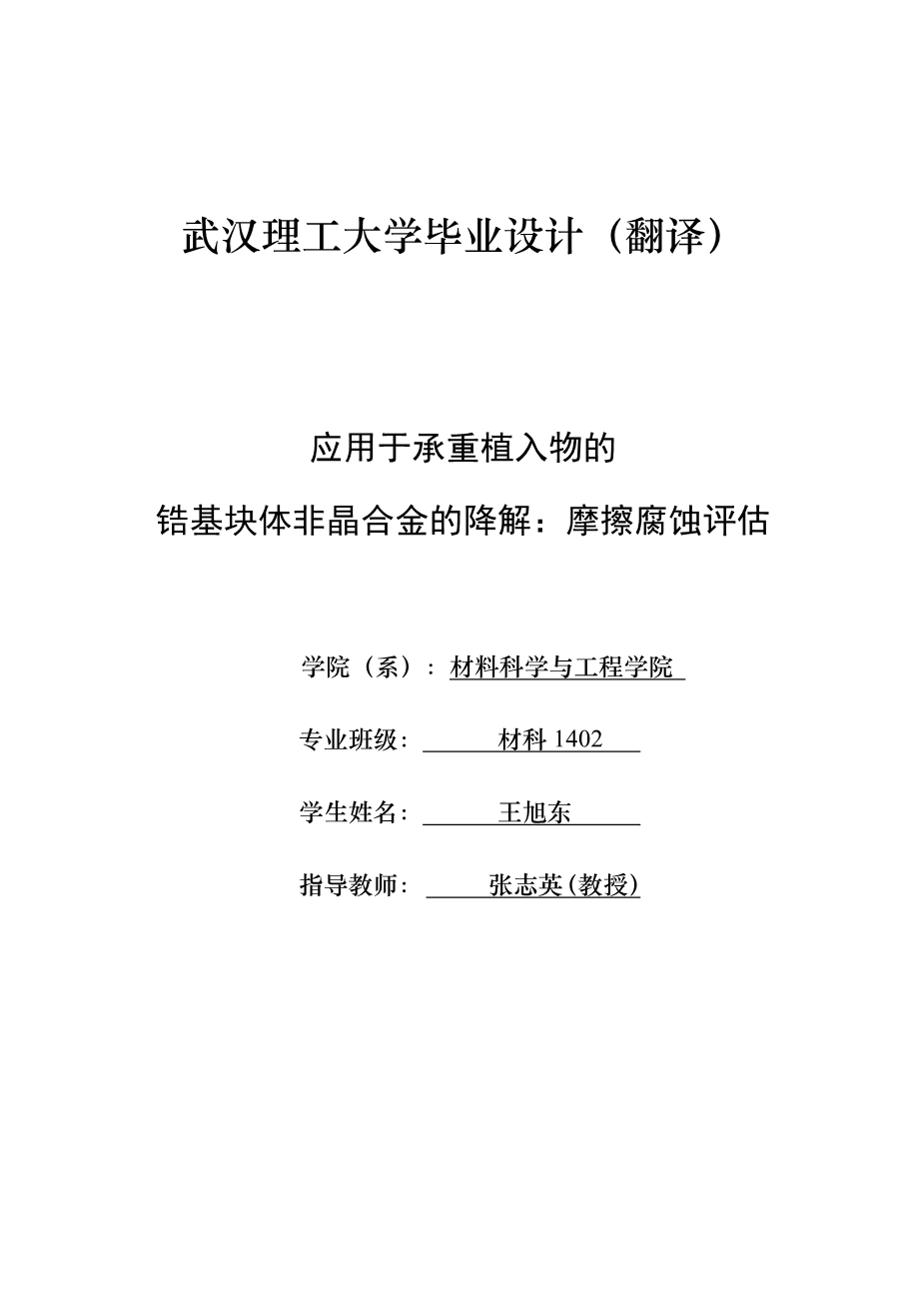 退火对锆基非晶合金电化学性能的影响外文翻译资料