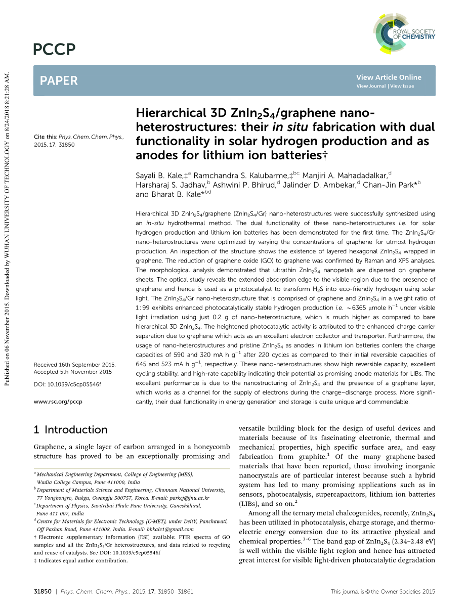 Sayali B. Kale, Ramchandra S. Kalubarme, Manjiri A. Mahadadalkar, Harsharaj S. Jadhav, Ashwini P. Bhirud, Jalinder D. Ambekar, Chan-Jin Park and Bharat B. Kale