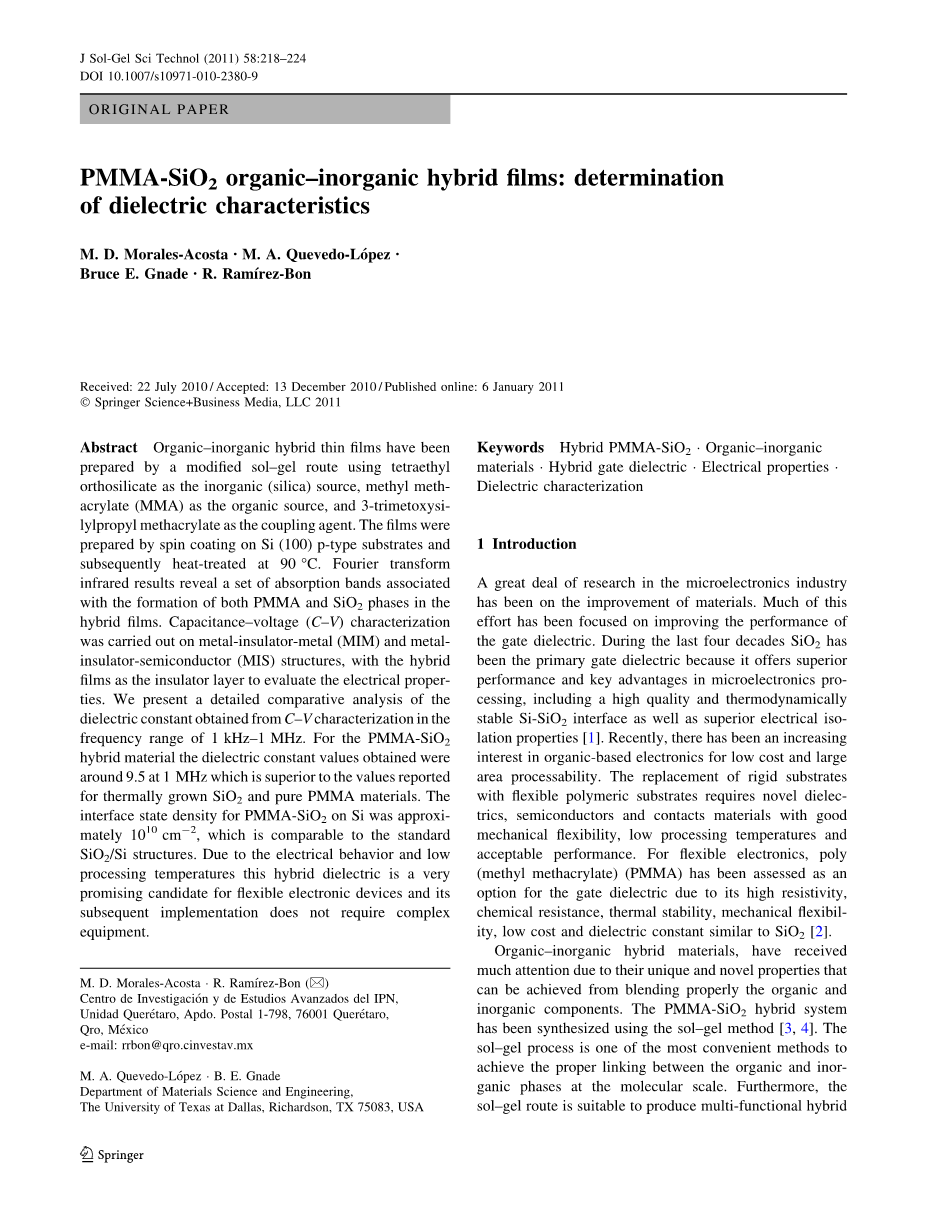 关键词:PMMA-SiO2杂化;有机无机材料;复合栅介质;电学特性;介电常数
