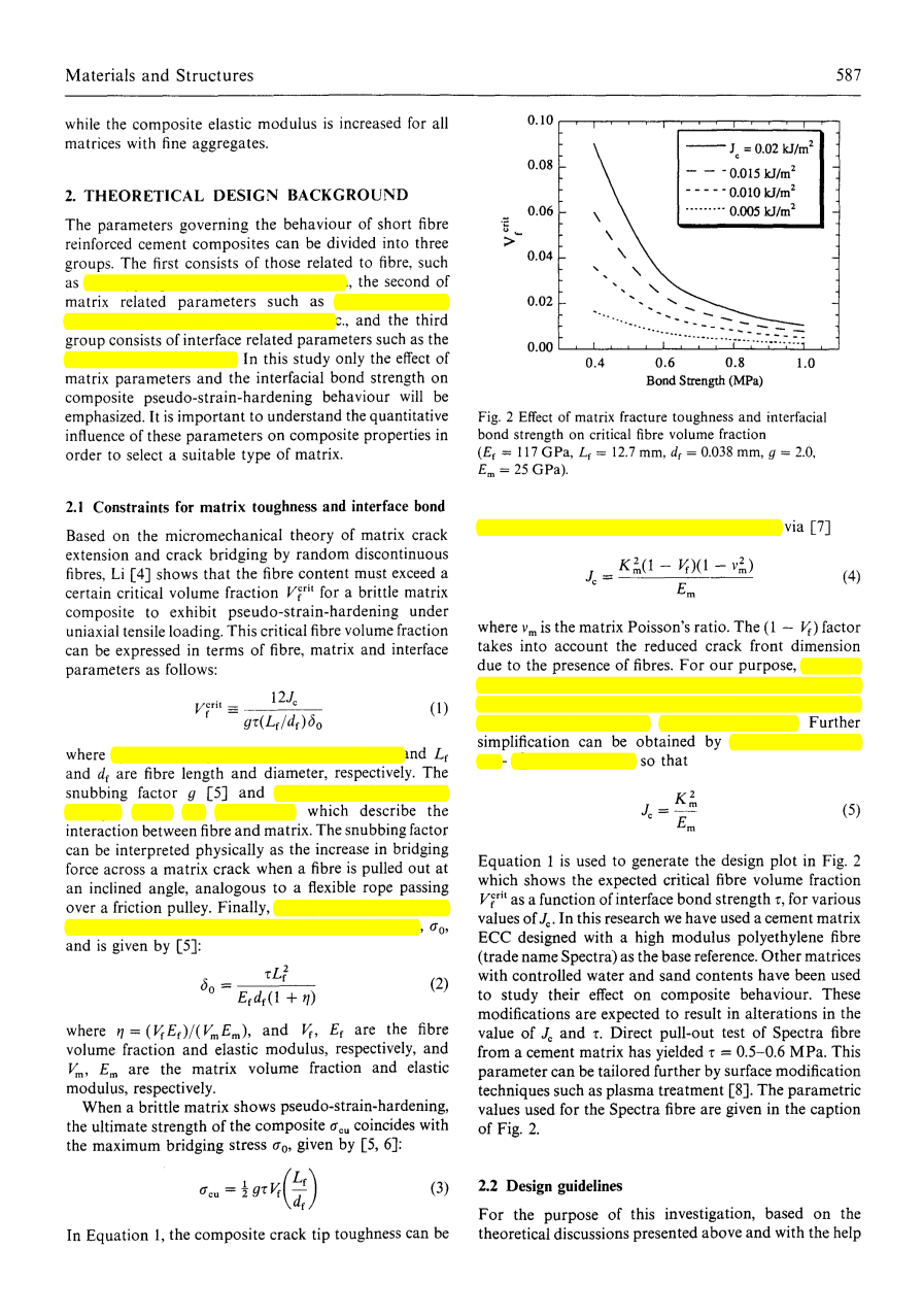 对短纤维增强水泥复合材料性能的参数可分为三类。。第一个由相关的纤维,如纤维类型、几何和力量等到进行分类,,第二个相关的矩阵参数如抗拉强度、断裂韧性、弹性模量等等,和第三组由接口等相关参数的界面粘结强度来进行分类。在此研究中,我们将重点讨论基体参数和界面粘结强度对复合伪应变的影响。为了选出合适的矩阵类型,对这些参数进行了解是非常有必要的。