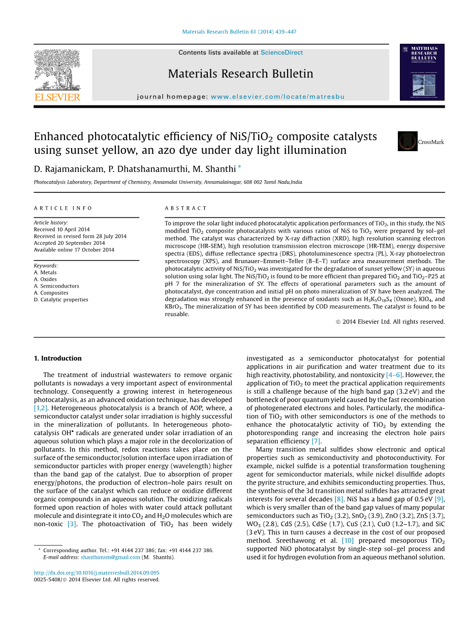 NiS/TiO2复合催化剂光催化降解偶氮染料日落黄性能的研究外文翻译资料