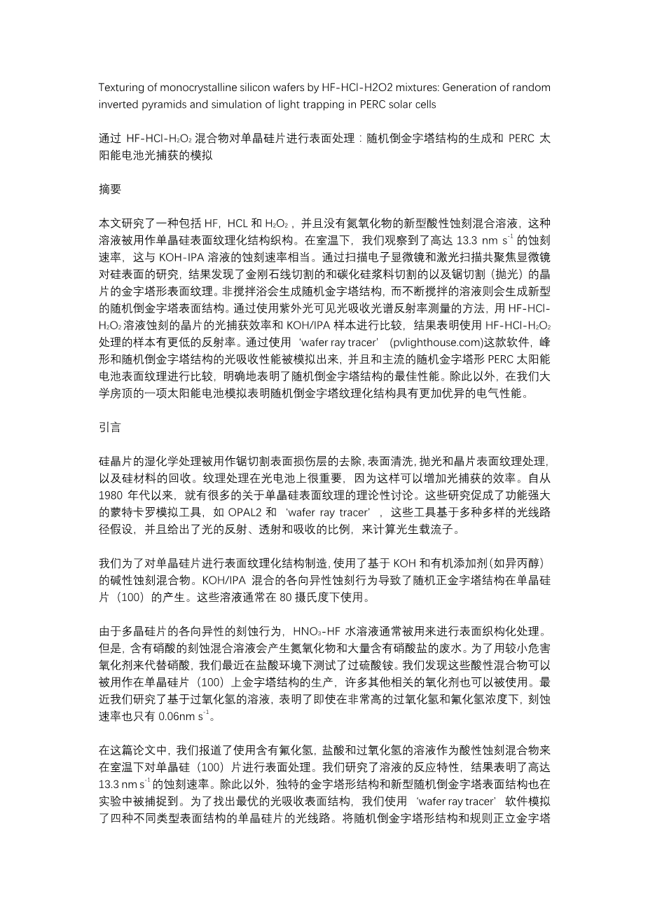 - 一种铱核心环金属有机配体显著地提高了有机太阳能电池 的光伏性能外文翻译资料