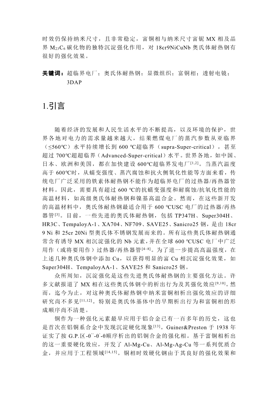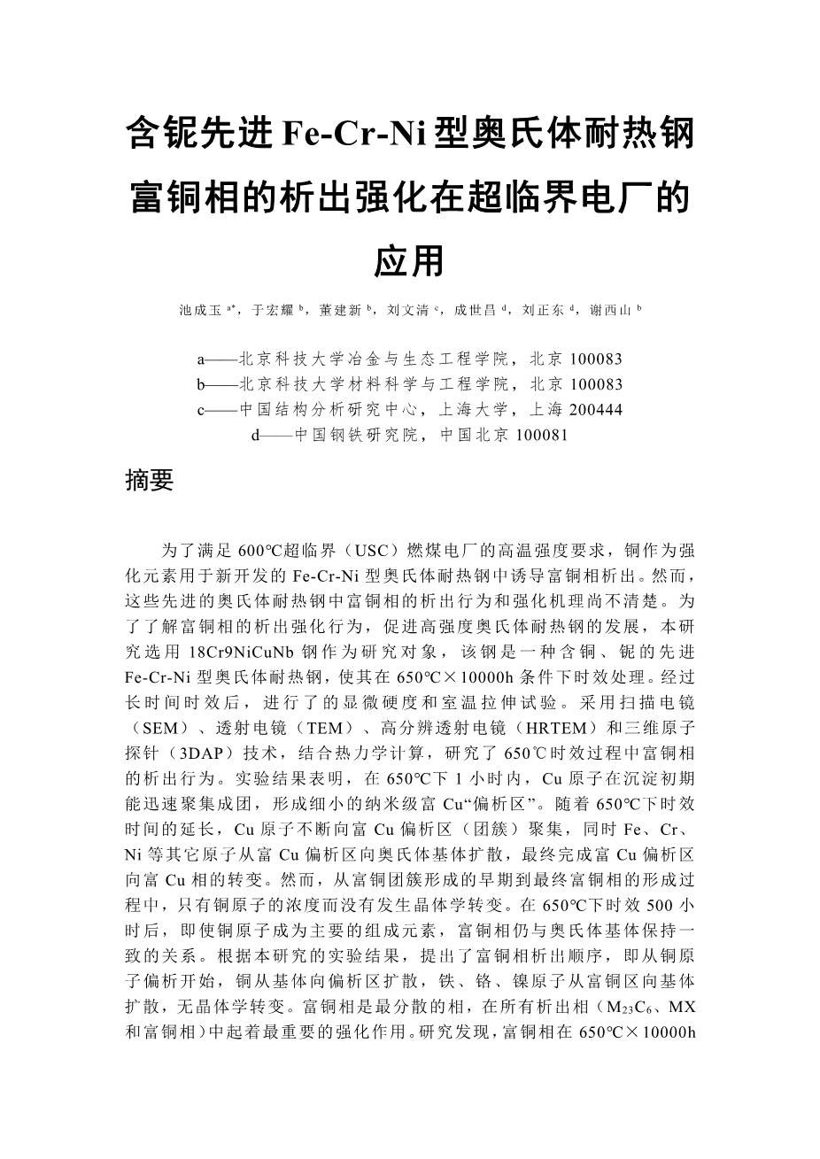 - 含铌先进Fe-Cr-Ni型奥氏体耐热钢富铜相的析出强化在超临界电厂的应用外文翻译资料