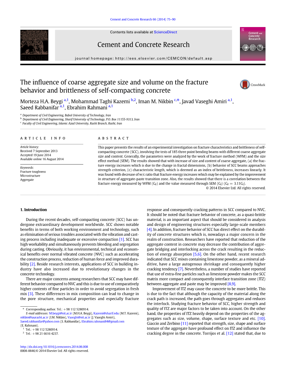 Morteza H.A. Beygi a,1 , Mohammad Taghi Kazemi b,2 , Iman M. Nikbin c, ⁎, Javad Vaseghi Amiri a,1 , Saeed Rabbanifar a,1 , Ebrahim Rahmani a,1