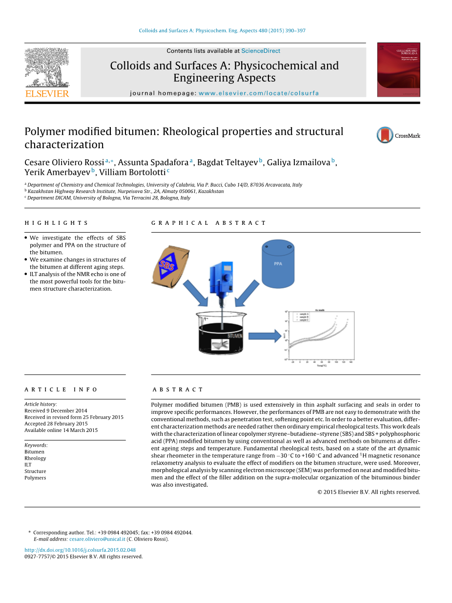 Cesare Oliviero Rossi a Assunta Spadafora a Bagdat Teltayev b Galiya Izmailova b Yerik Amerbayev b Villiam Bortolotti c