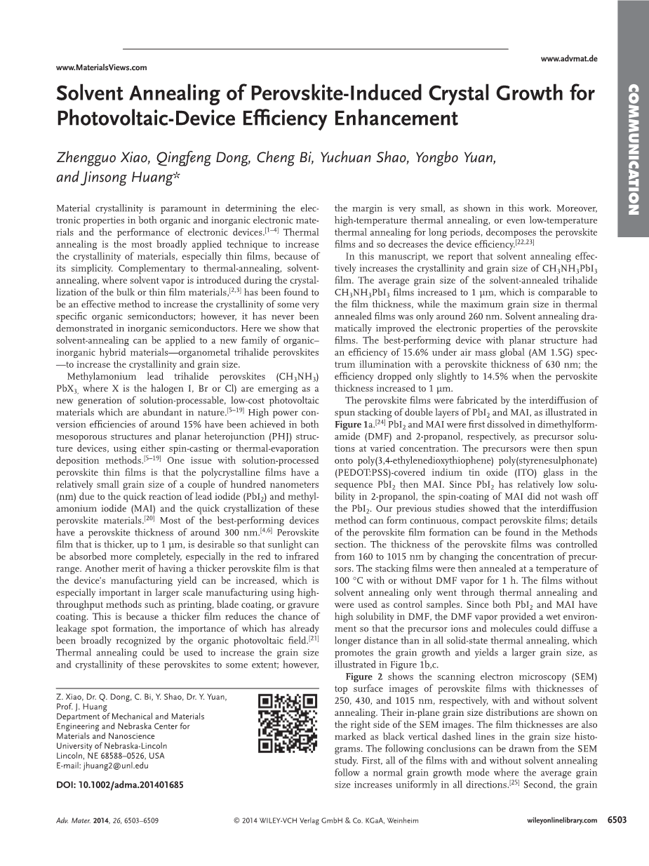 表面改性钙钛矿薄膜用于钙钛矿太阳能电池外文翻译资料