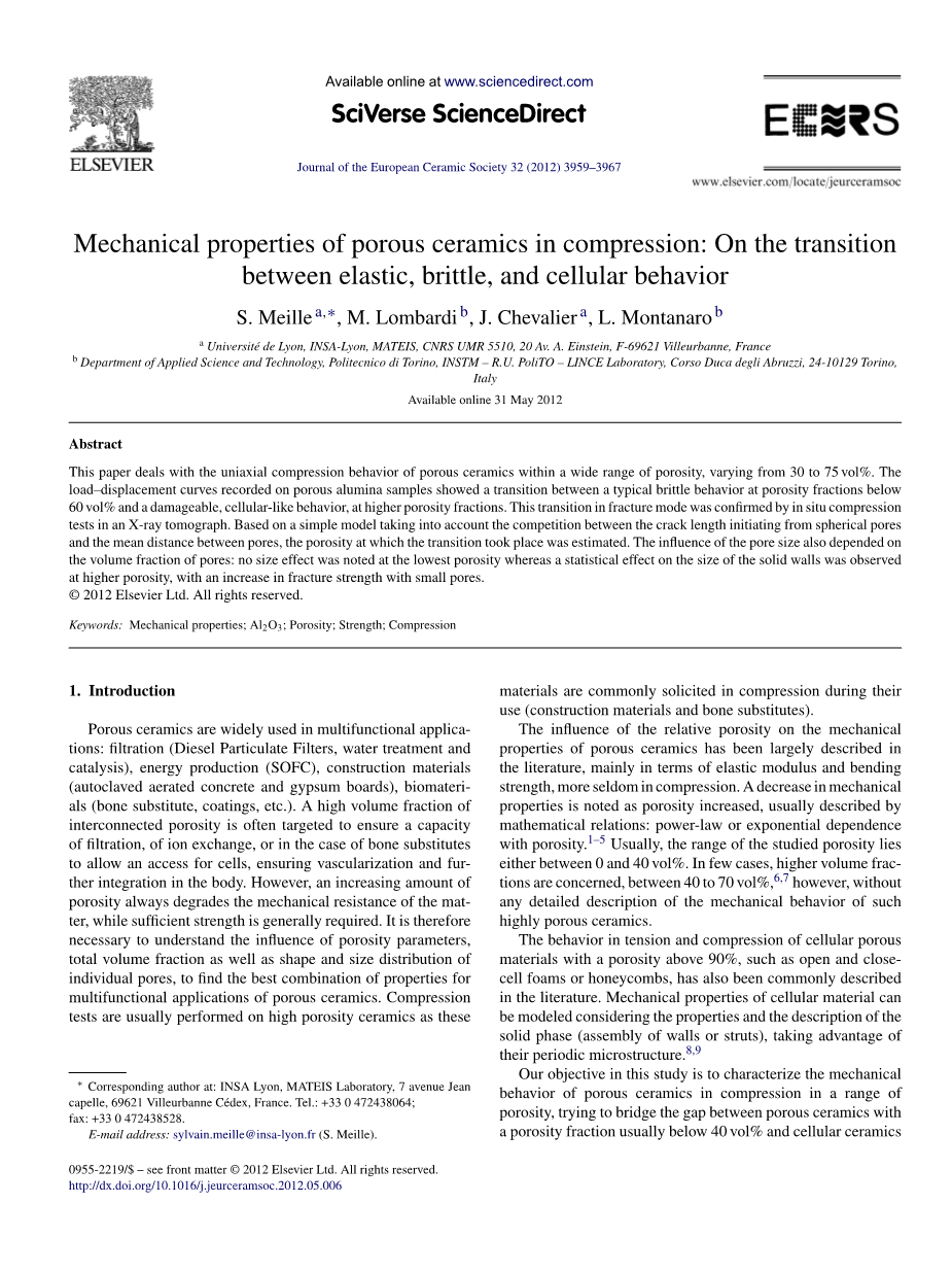 S. Meille a,lowast;, M. Lombardi b, J. Chevalier a, L. Montanaro b