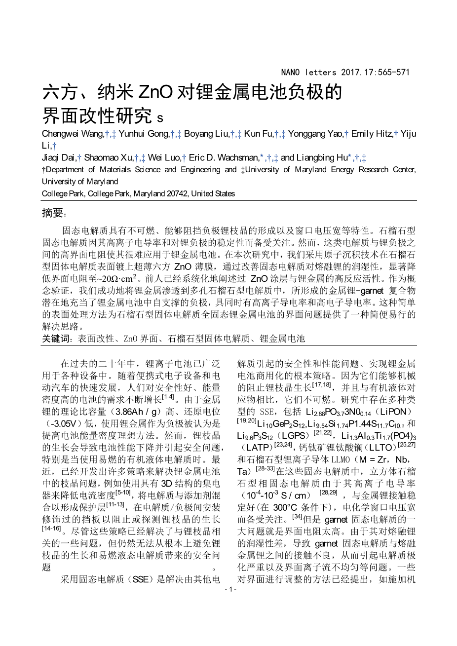 LLZO固体电解质与锂负极的界面改性及其全固态电池外文翻译资料