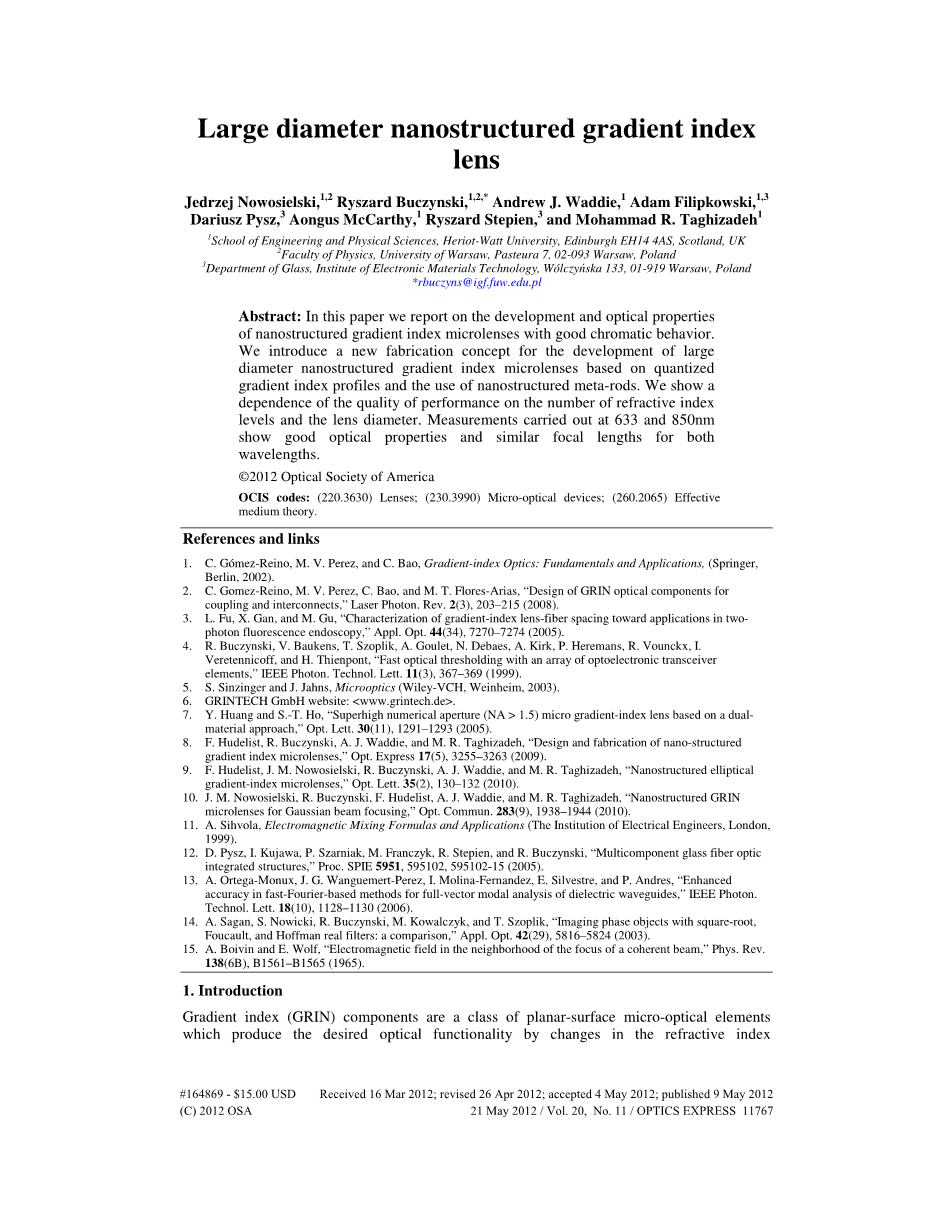 作者:Jedrzej Nowosielski,1,2 Ryszard Buczynski,1,2,* Andrew J. Waddie,1Adam Filipkowski,1,3Dariusz Pysz,3Aongus McCarthy,1Ryszard Stepien,3and Mohammad