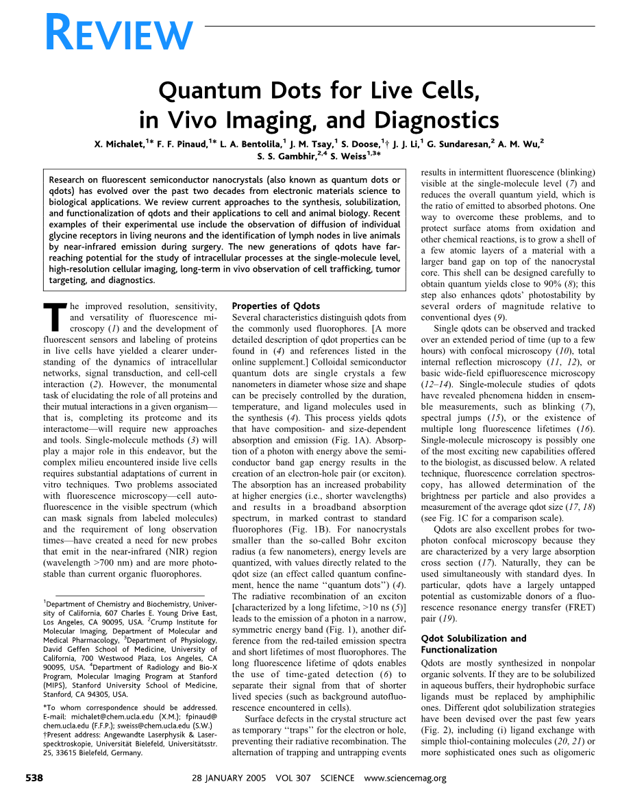 用于活细胞的量子点材料在活体成像与诊断中的应用外文翻译资料