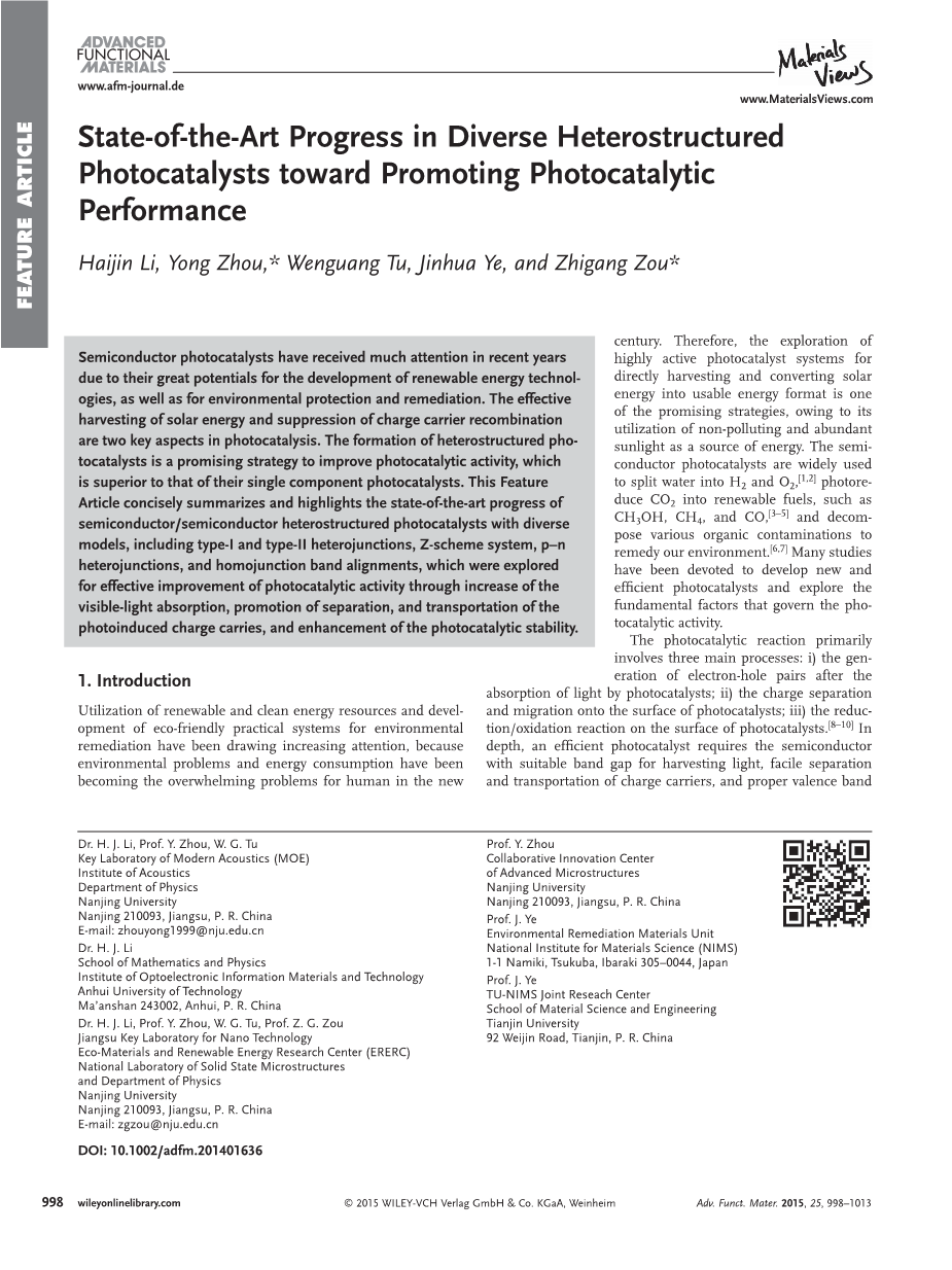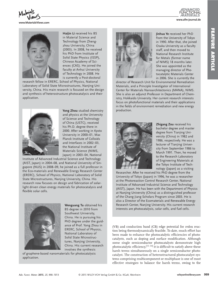 Haijin Li , Yong Zhou , * Wenguang Tu , Jinhua Ye , and Zhigang Zou *