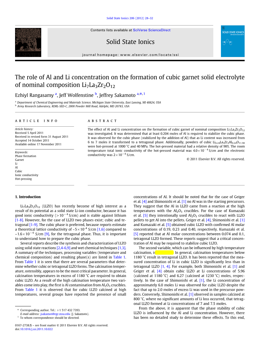 Al、Li浓度对制备名义成分为Li7La3Zr2O12的立方相石榴石型固体电解质的影响