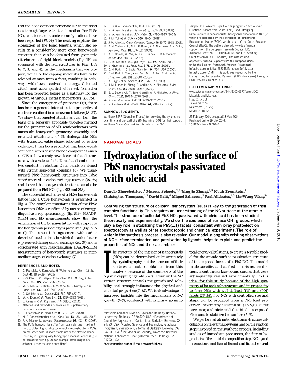 Danylo Zherebetskyy, Marcus Scheele, Yingjie Zhang, Noah Bronstein, Christopher Thompson, David Britt, Miquel Salmeron1, Paul Alivisatos, Lin-Wang Wang.