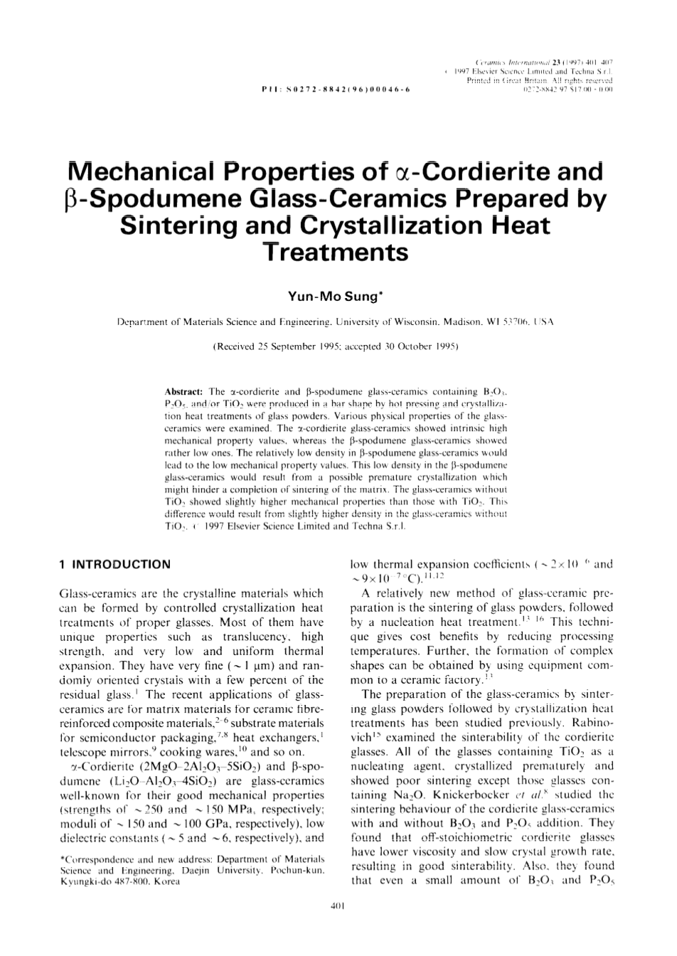 烧结和晶化热处理法制备α-堇青石和β-锂辉石微晶玻璃的力学性能研究外文翻译资料
