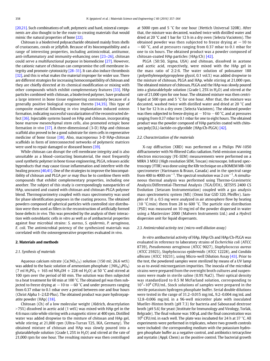 关键词:抗菌活性,骨再生,壳聚糖,羟基磷灰石,聚乳酸-羟基乙醇酸,热分析质谱法
