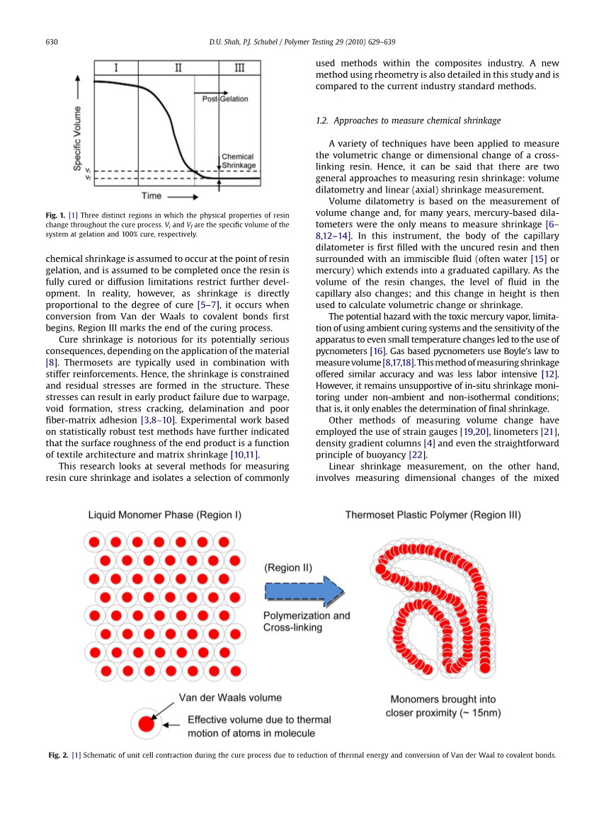 对于本研究,为了在不压缩初始液态树脂的情况下进行线性收缩测量,假定树脂化学收缩发生在树脂凝胶化点,并且假定一旦树脂完全固化或扩散限制限制了进一步发展,就完成树脂收缩。 然而,实际上,由于收缩率与固化程度成正比[5-7],因此当从范德华转变为共价键首先开始时就会发生收缩。 区域III标志着固化过程的结束。