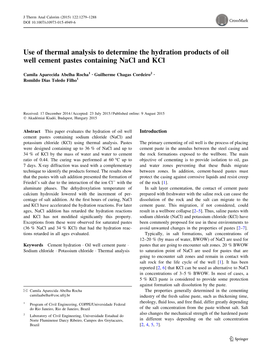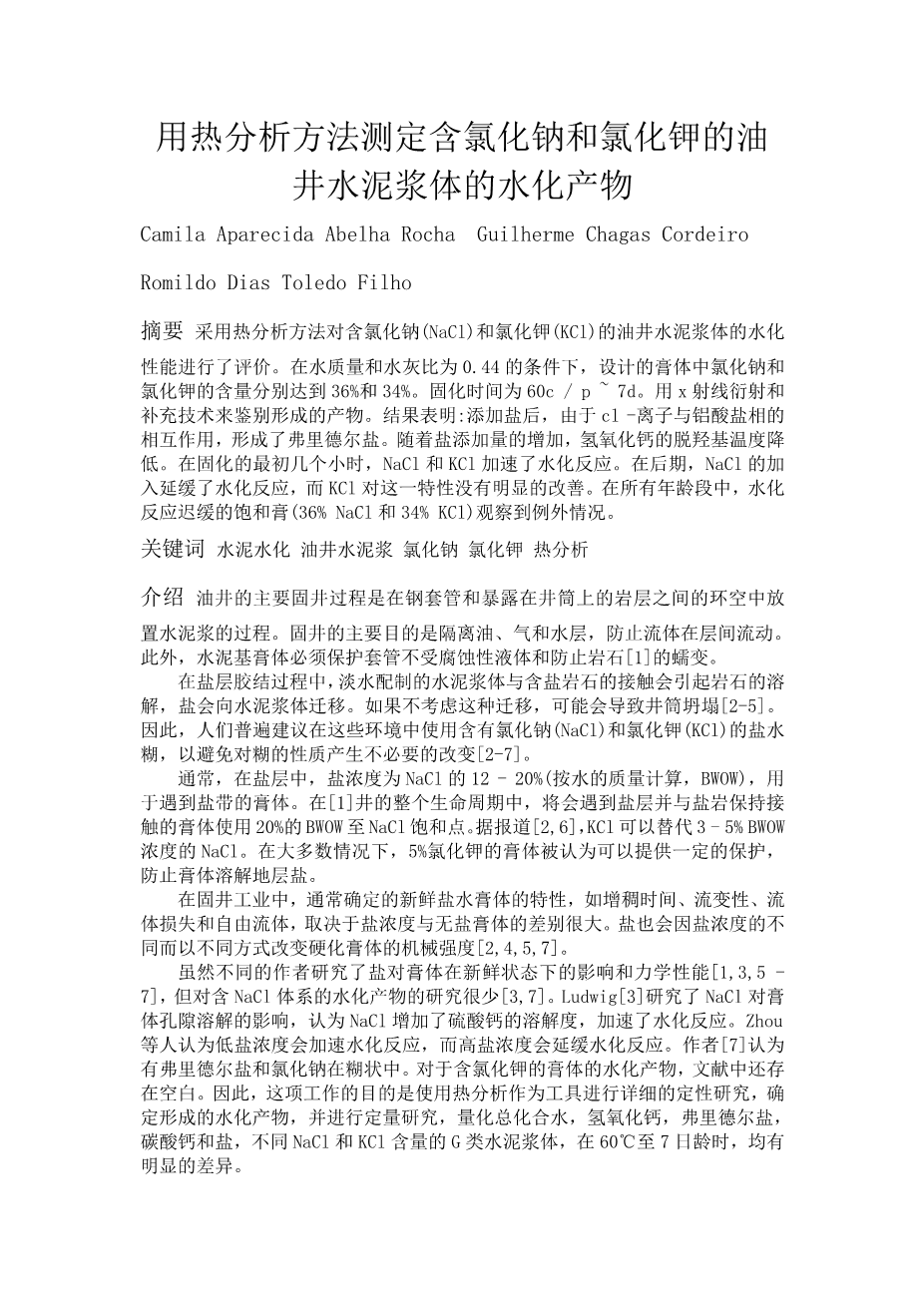 - 用热分析方法测定含氯化钠和氯化钾的油 井水泥浆体的水化产物外文翻译资料