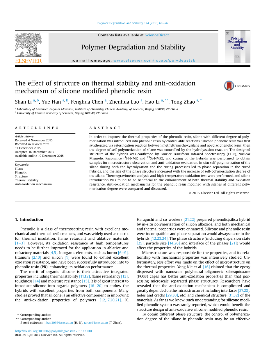 【关键词】硅烷;酚醛;结构体;热稳定性;抗氧化机制