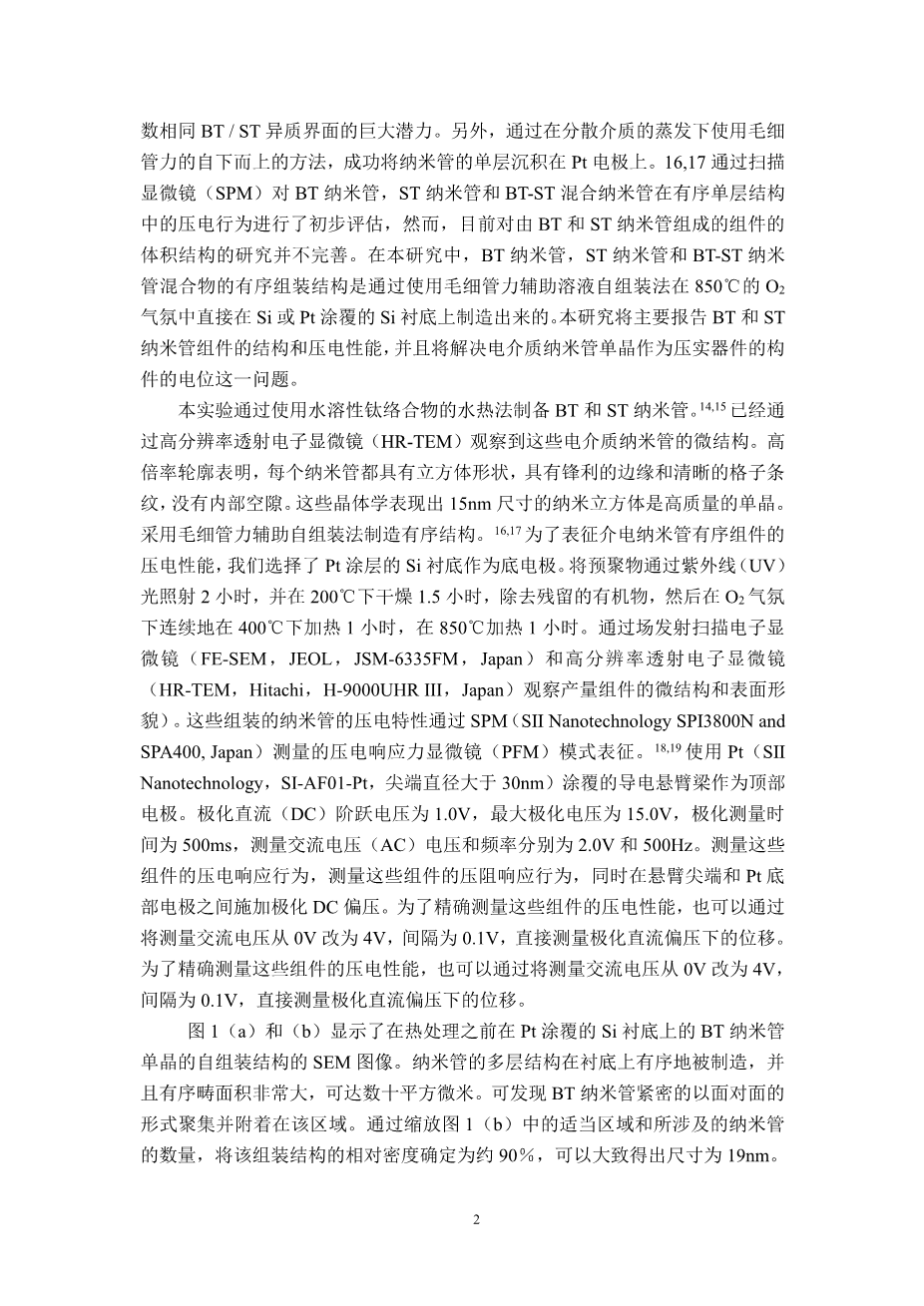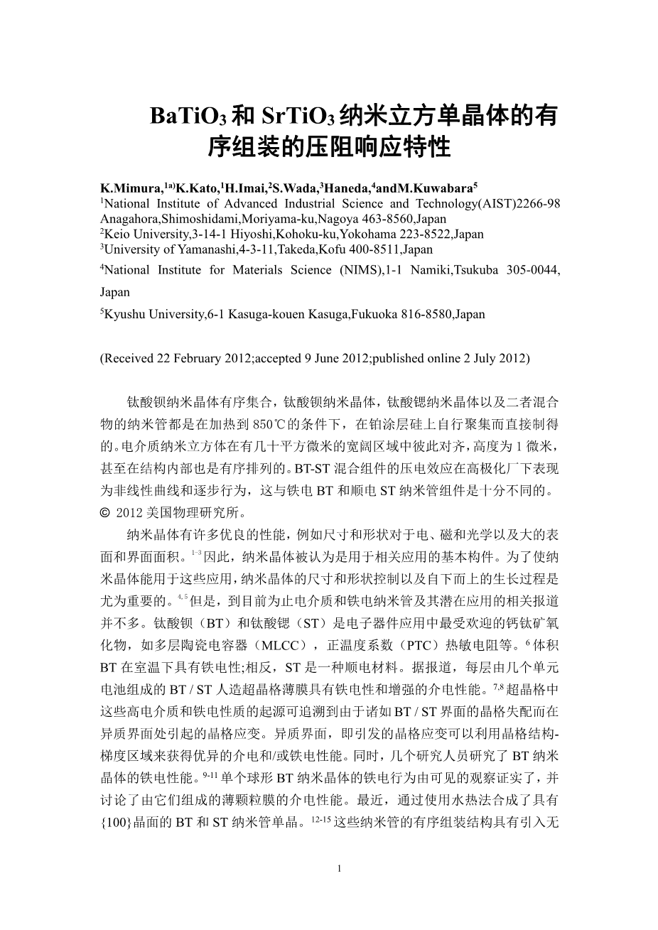 BaTiO3和SrTiO3纳米立方单晶体的有 序组装的压阻响应特性外文翻译资料