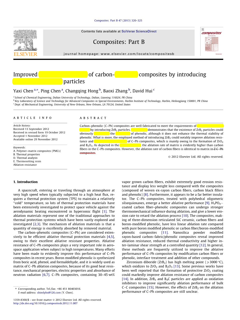 引入硼化锆粒子提高碳酚醛复合材料的耐烧蚀性能外文翻译资料