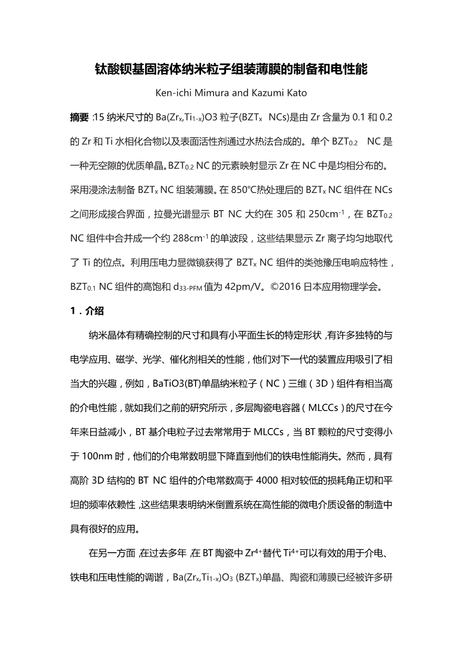 水热法可控生长Pb(Zr0.52Ti0.48)O3纳米晶体外文翻译资料