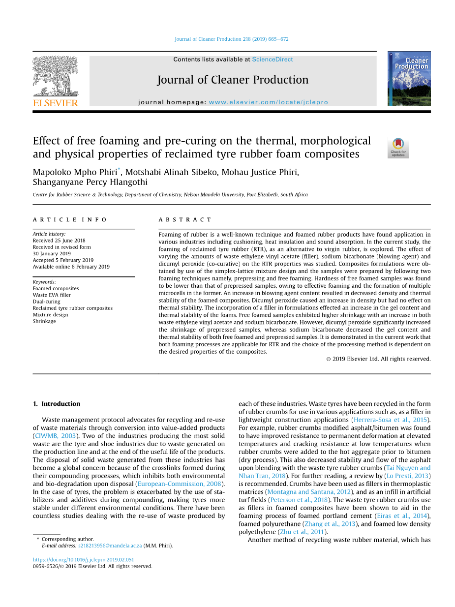 自由发泡预硫化对再生轮胎橡胶泡沫复合材料热性能、形态和物理性能的影响