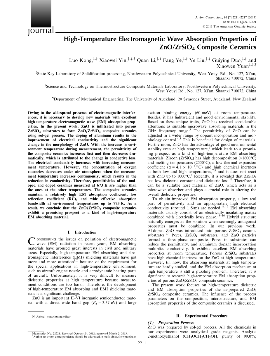 高温电磁波的吸收特性氧化锌/ ZrSiO4复合陶瓷外文翻译资料