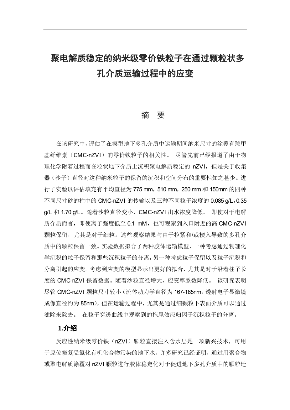 - 水凝胶在水体污染物吸附和废水处理中的应用外文翻译资料